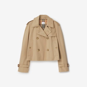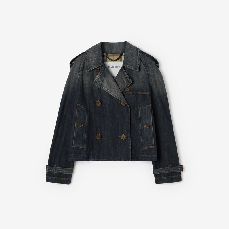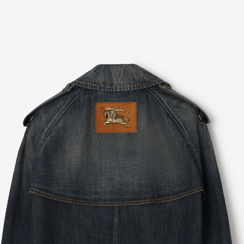 A contemporary icon rooted in Burberry's heritage, the Mayfair trench jacket reinterprets our signature silhouette with a tailored edge. Crafted from mid-weight denim, the double-breasted style is cut to oversized proportions with soft, curved shoulders for effortless layering. The cropped hemline offers a fresh approach to styling the trench, adding emphasis to trousers, skirts, and dresses. Inside is the Burberry Check, used to line our coats since the 1920s, while epaulettes and belted cuffs complete the archive-inspired design.