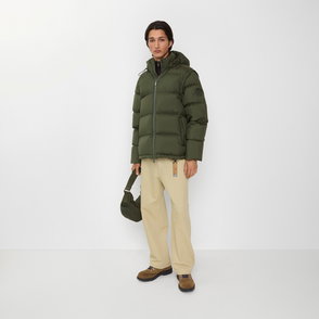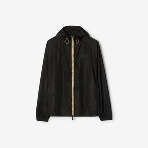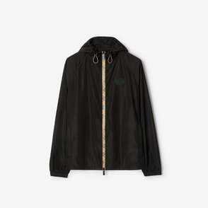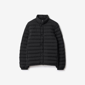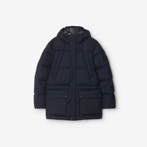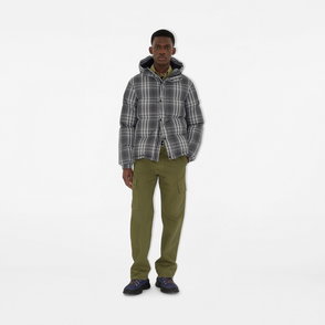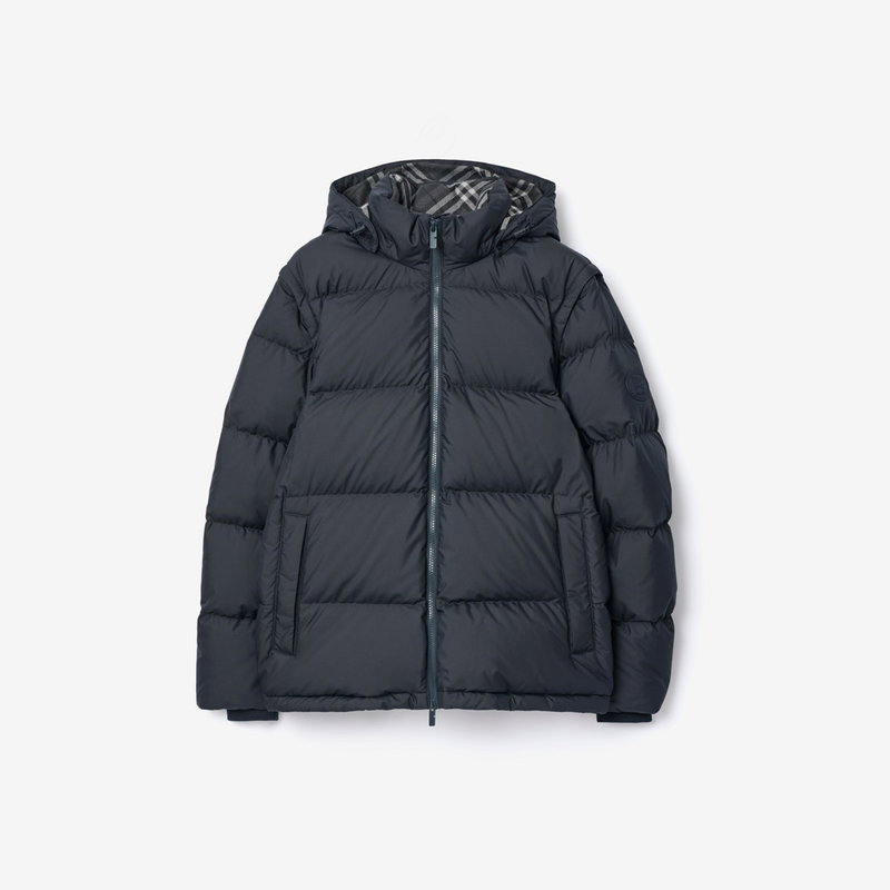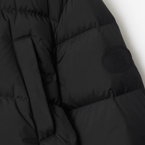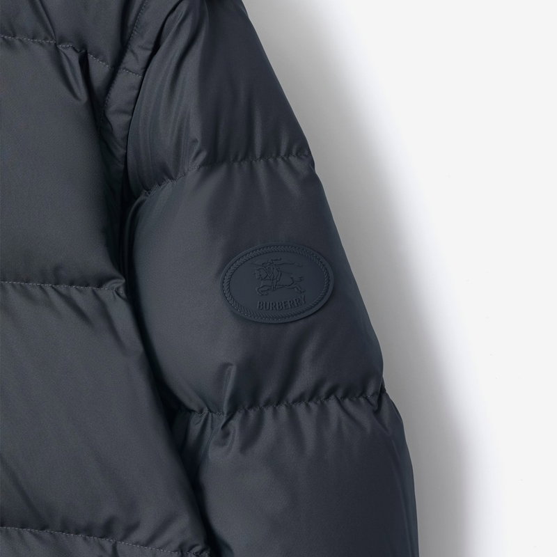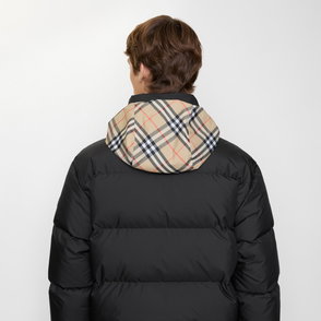 A puffer jacket filled with goose down and insulating fibres, appliquéd with our Knight stamp - an archival motif from the 1980s. Detachable sleeves switch the design from a jacket to a gilet. The style is cut to a relaxed fit and features a Burberry Check wool lining at the detachable hood and collar.
