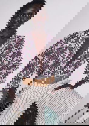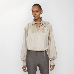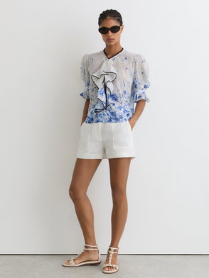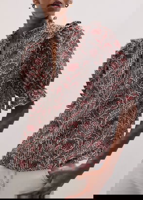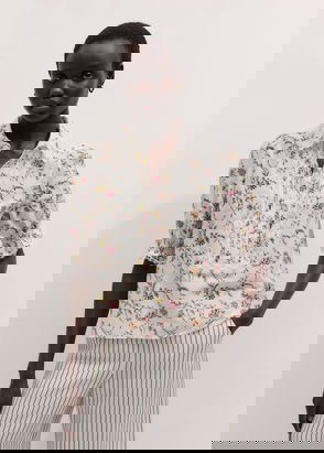 A blouse in silk creponne, cut to a regular fit and printed with seasonal ditsy florals - a joyful celebration of British garden flowers. The floaty silhouette features scarf ties that can be knotted into a bow and smocked detailing at the cuffs to create its distinctive balloon sleeves. Finished with a detachable silk camisole. Press-stud detachable camisole
