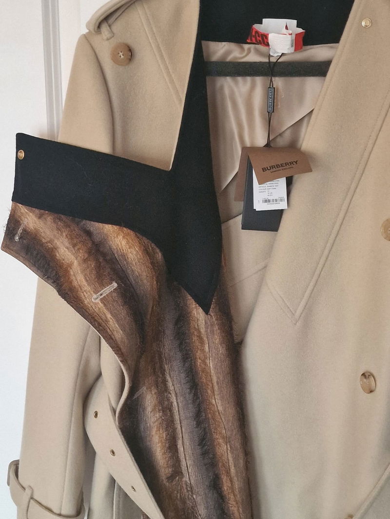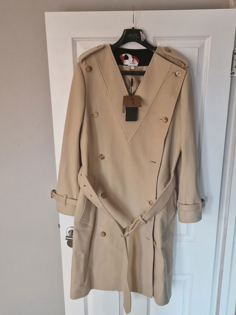 Established in 1856, Burberry was founded with the idea of creating clothing suitable for British weather. This blend of function and style is continued today, and can be seen in the cashmere and wool-blend construction of this trench coat.