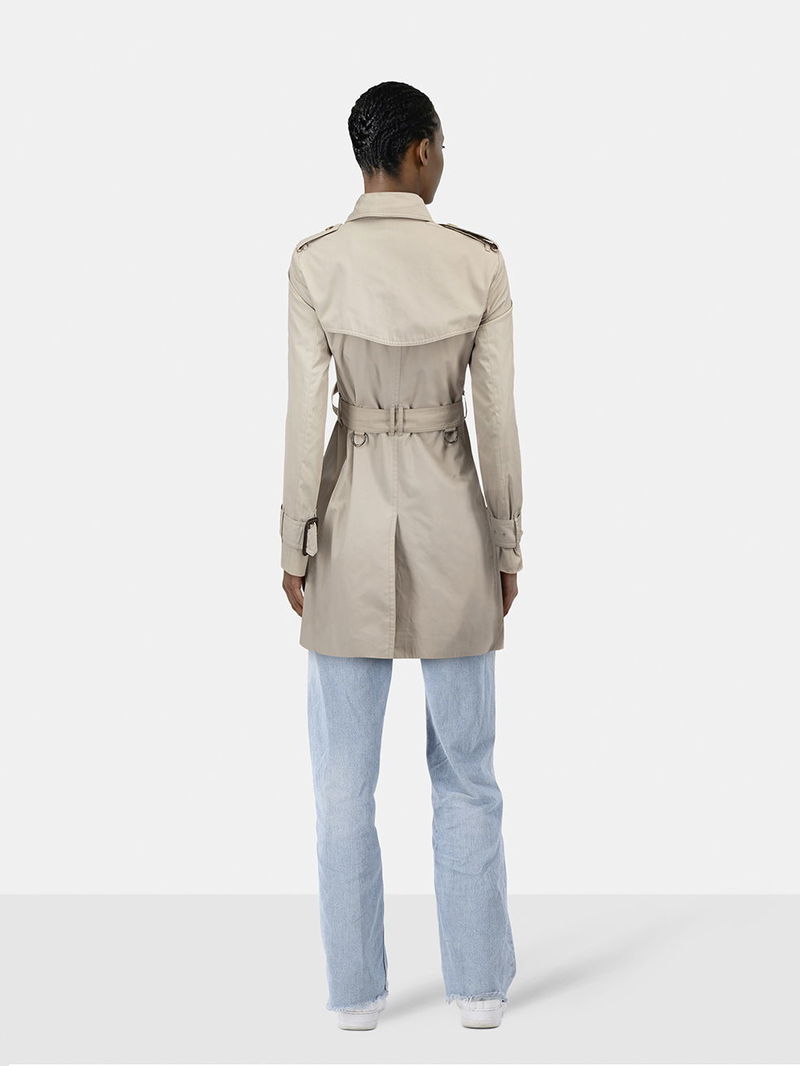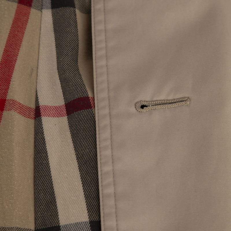 Beige double-breasted trench coat in excellent, pre-worn condition. See images for signs of wear.