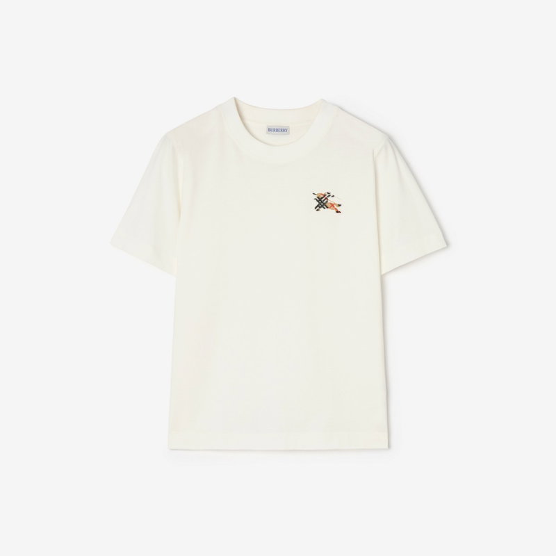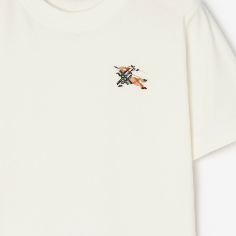 A T-shirt in lightweight cotton jersey, cut to a classic fit. The crew-neck style is embroidered with a tufted Equestrian Knight Design in sand beige Burberry Check.