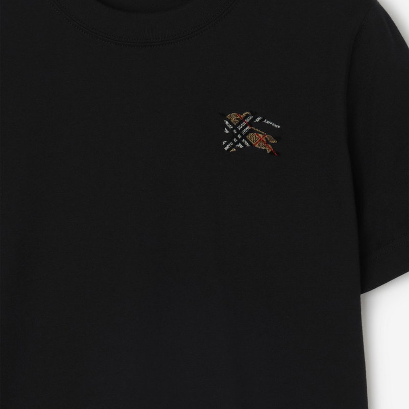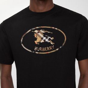 A T-shirt in lightweight cotton jersey, cut to a classic fit. The crew-neck style is embroidered with a tufted Equestrian Knight Design in sand beige Burberry Check.