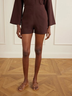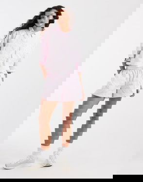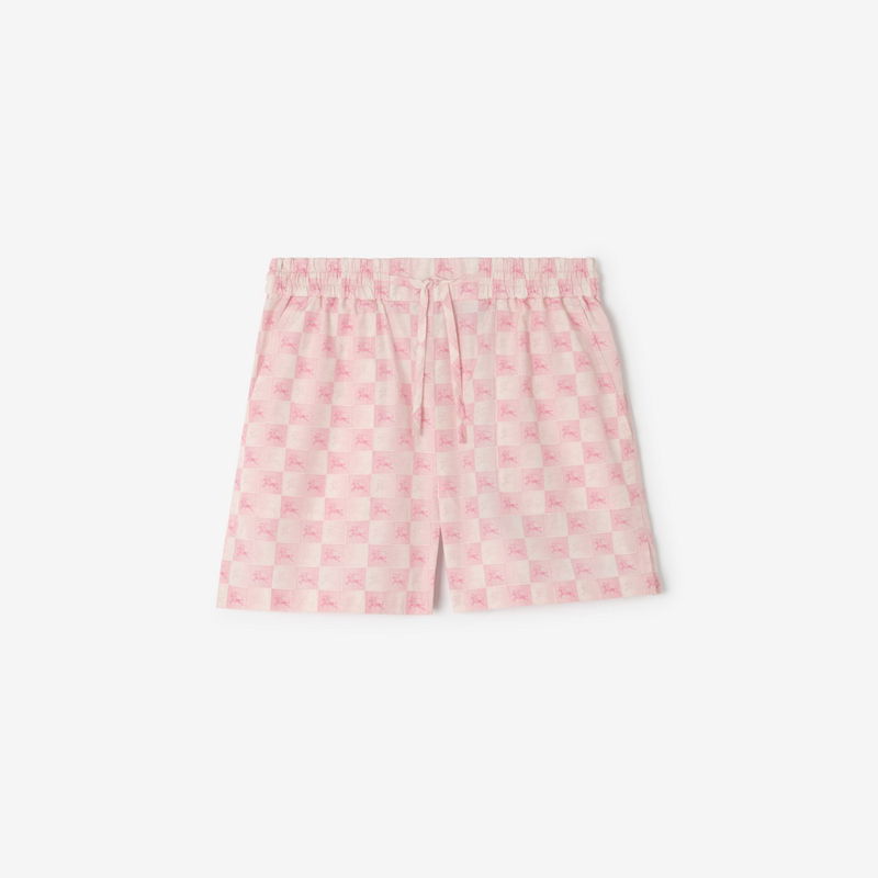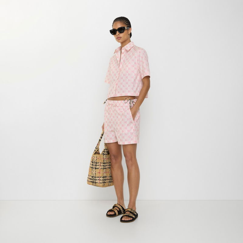 High-rise shorts in cotton poplin, woven with the Equestrian Knight Design in a summery peony pink checkerboard pattern. The style is tailored to a regular fit with side splits at the hem and an adjustable waist.