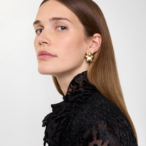 A pair of stud earrings made in Italy from brass with gold plating, decorated with the Equestrian Knight Design.