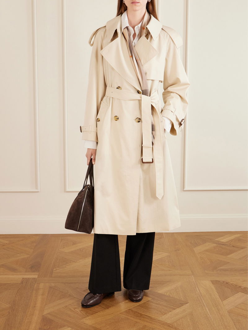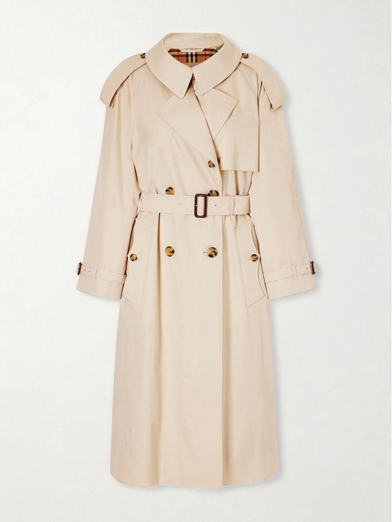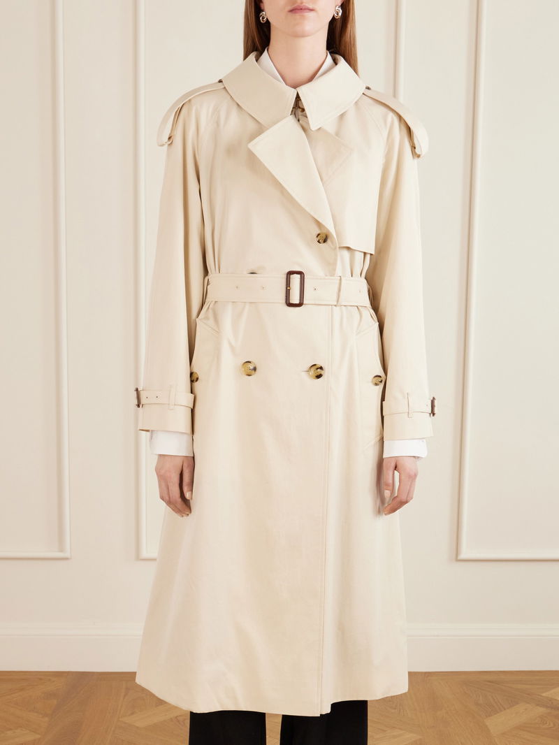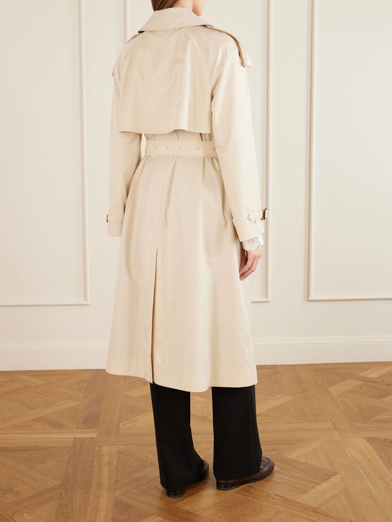 Trench coats are synonymous with Burberry, the house that invented the style in the 19th century. Made in England from gabardine, the 'Fitzrovia' coat features all the classic details of the original design, including epaulettes, a storm flap and a waist belt. Style it with a silk scarf.