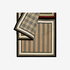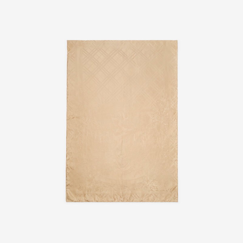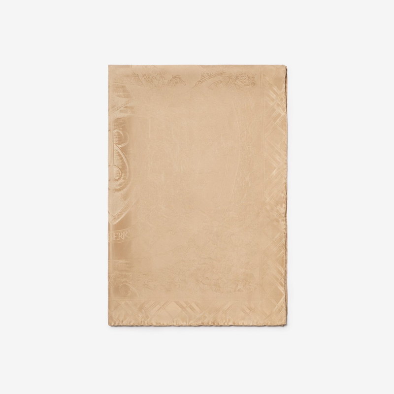 An Italian-made silk scarf, jacquard-woven with archival-inspired artwork featuring elements from the Equestrian Knight Design surrounded by delicate British flowers and the Burberry Check. The rectangular style is finished with hand-rolled edges.
