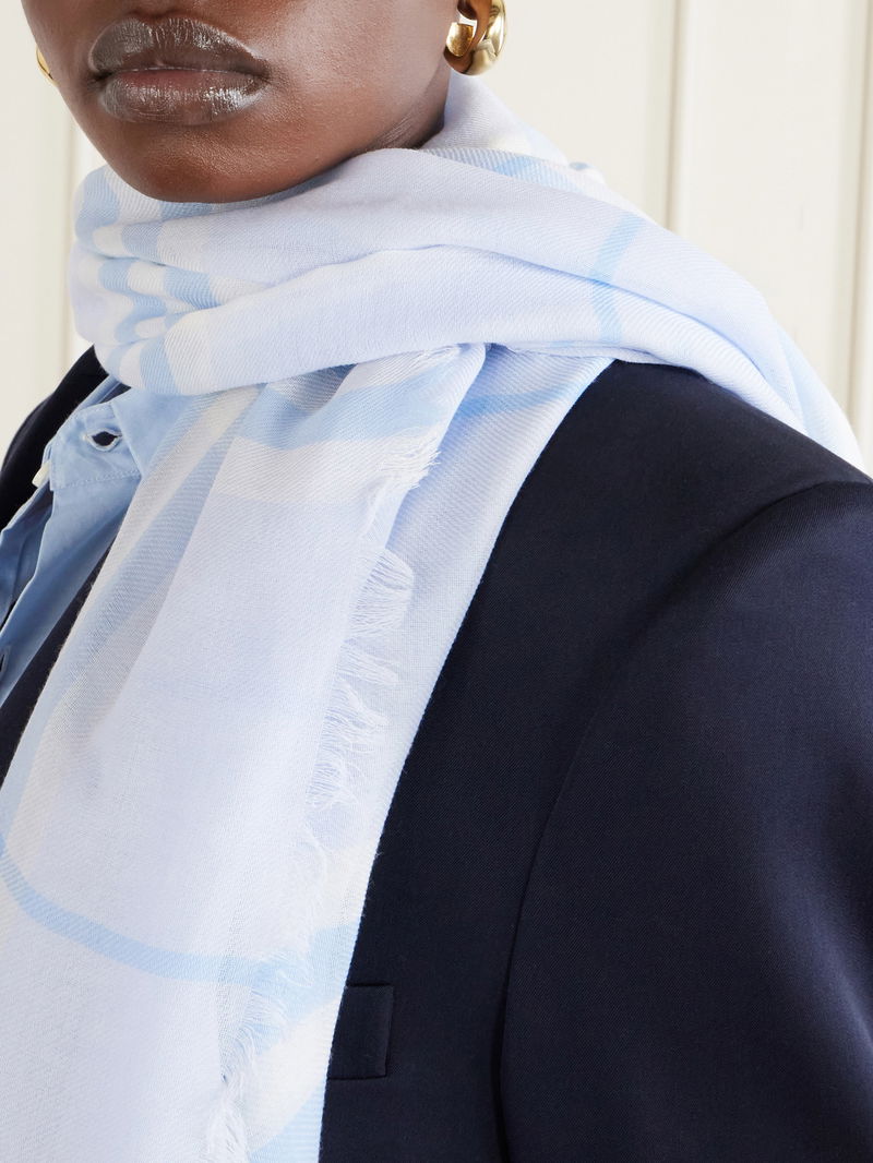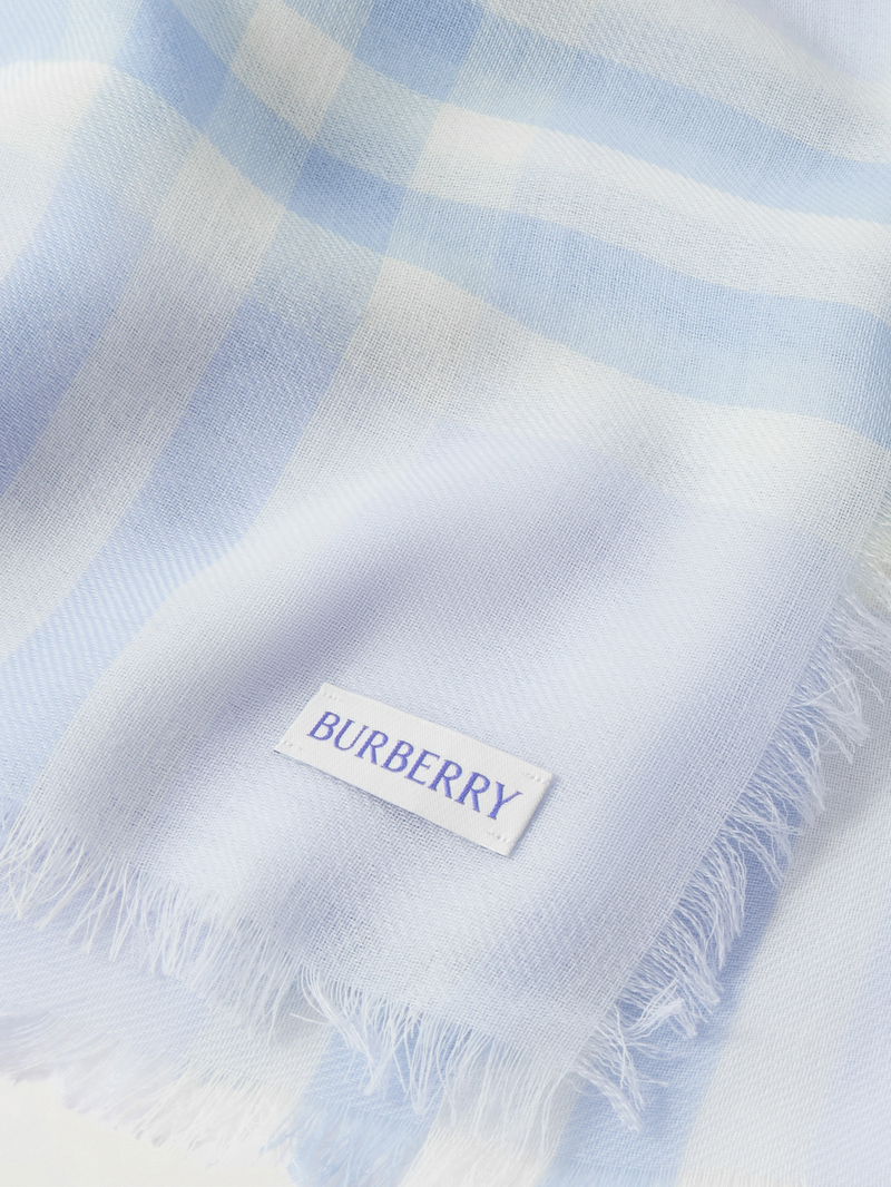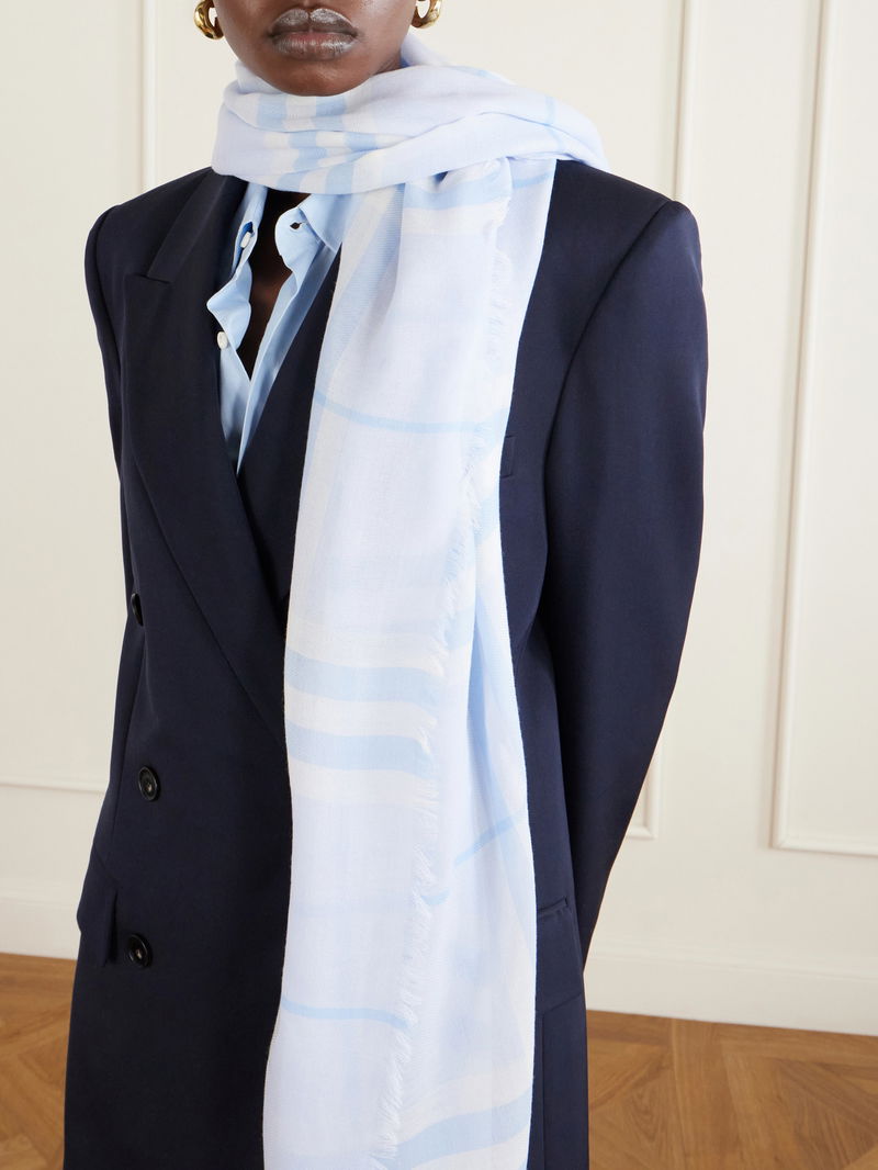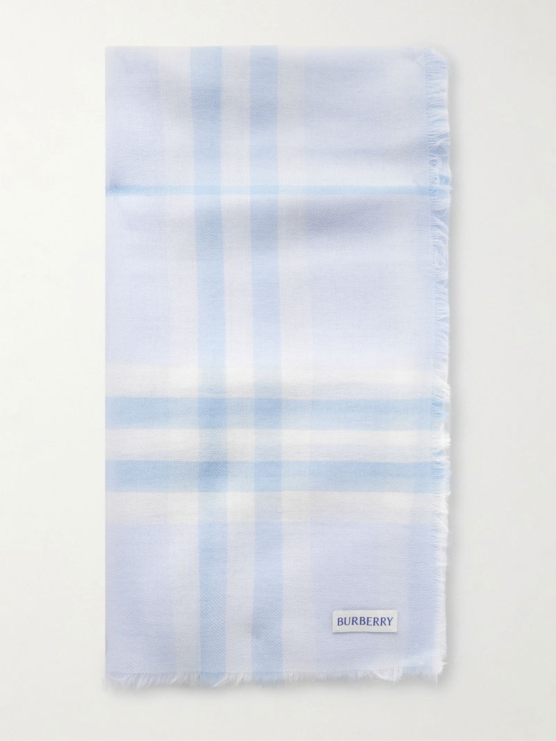Burberry's scarf is emblazoned with a scaled-up version of the house's signature checks. It's been made in Italy from lightweight wool and has an enveloping shape with tactile frayed edges. The soft palette will go with almost everything.