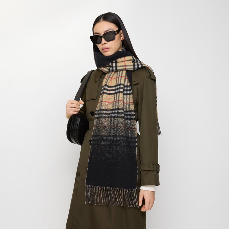 Gradient Check Cashmere Scarf