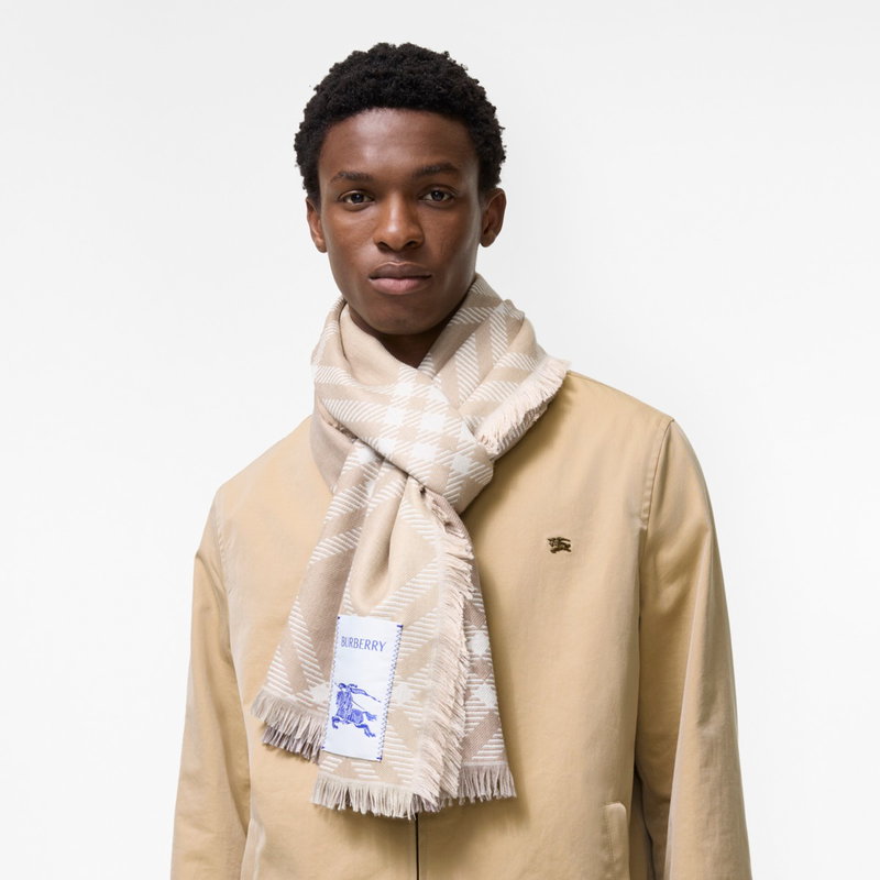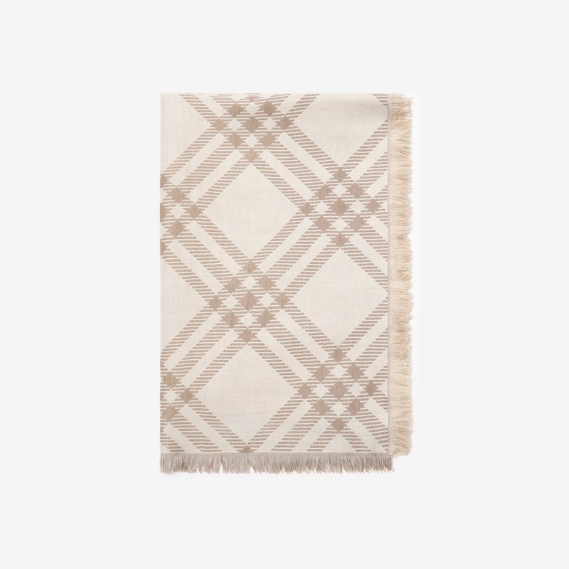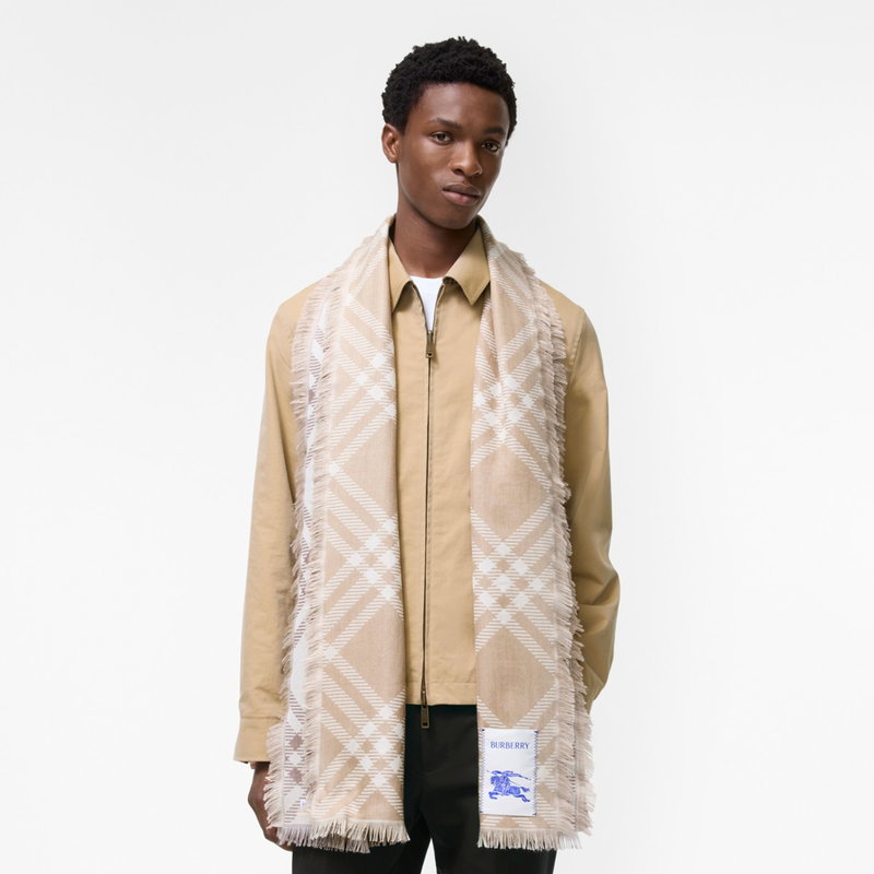 A lightweight scarf crafted in Italy from a soft blend of wool silk. The warp threads are printed prior to weaving, creating a seasonal check with a subtle gradient effect.
