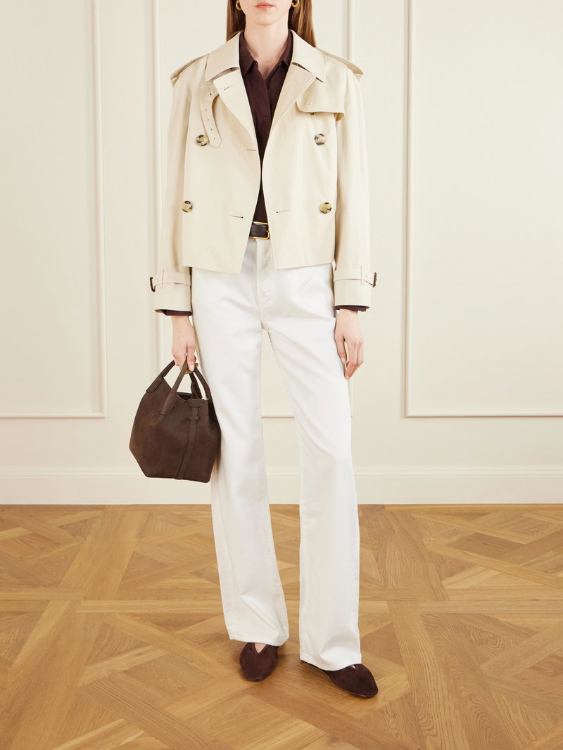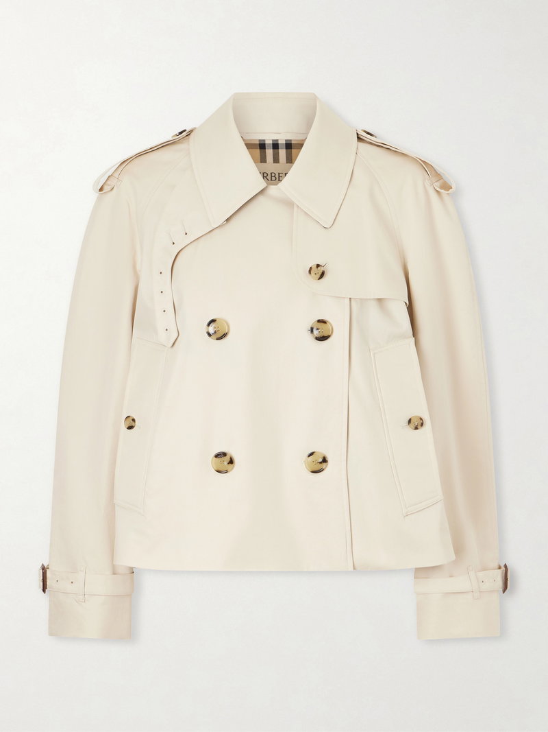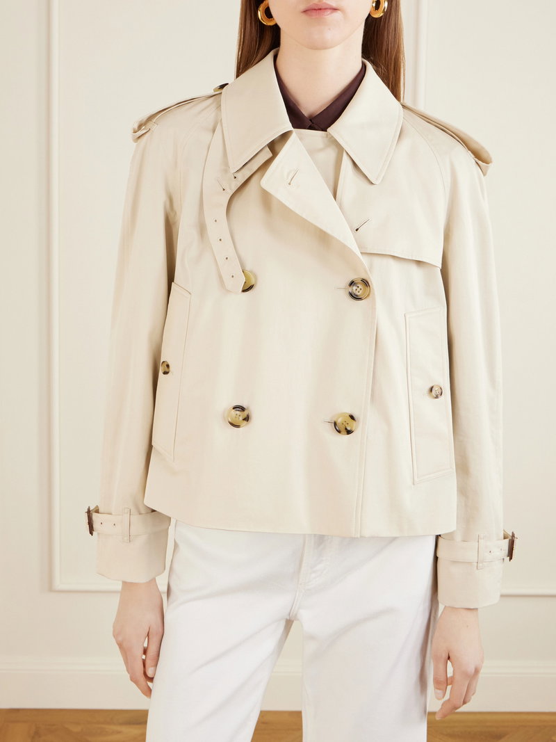 Haltye Double-breasted Belted Cotton-gabardine Cropped Trench Jacket