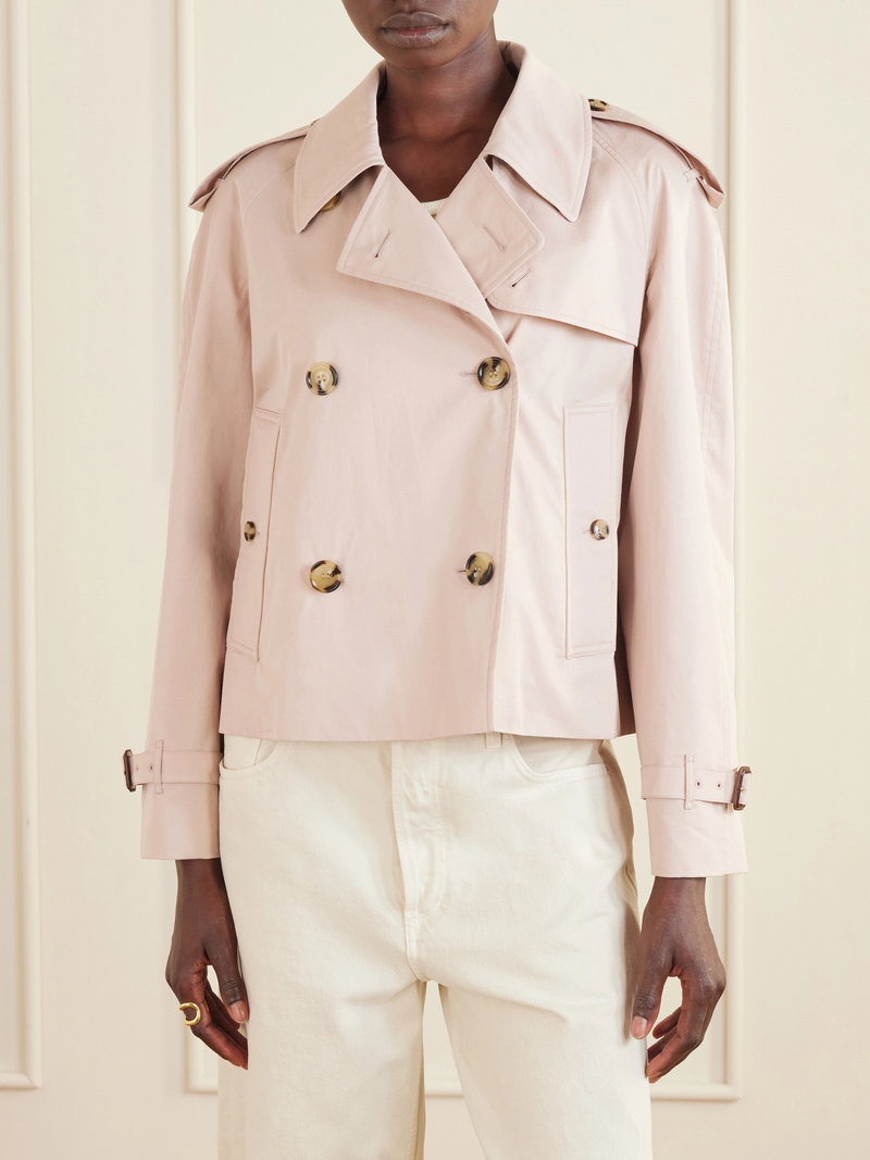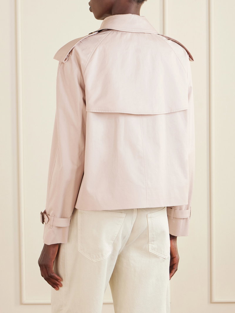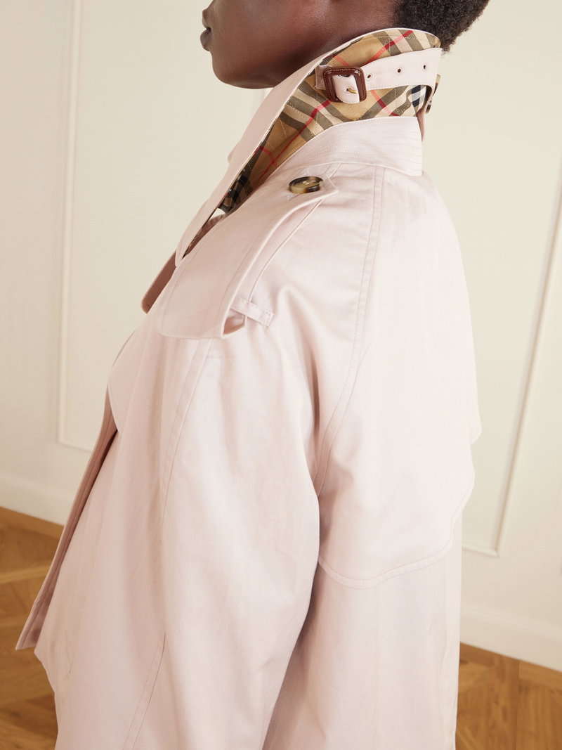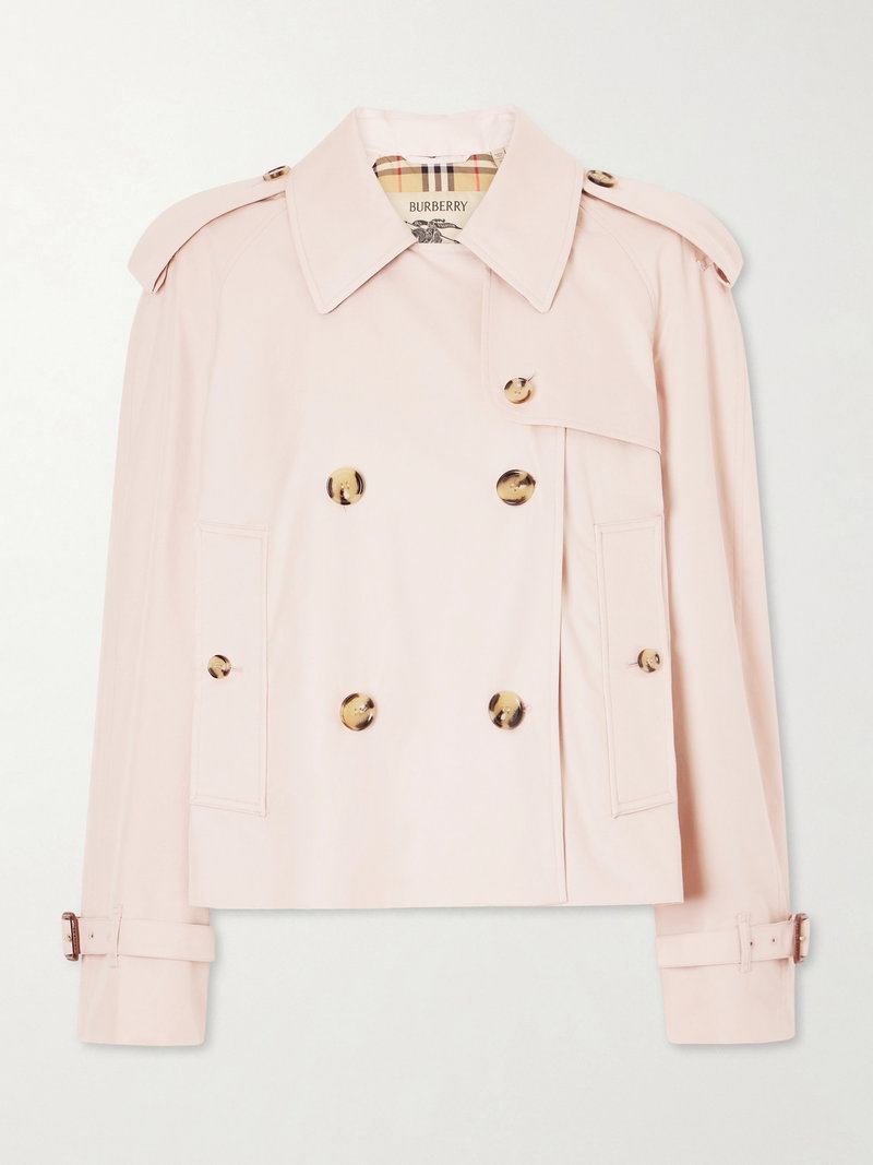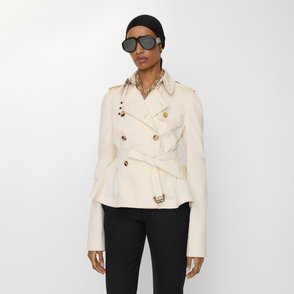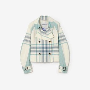 A playful take on a house classic, the 'Haltye' jacket by Burberry reimagines the iconic trench in a cropped silhouette. Tailored from cotton gabardine, it features a double-breasted front with engraved buttons and epaulettes at the shoulders. The Burberry Check lining adds a signature finish.