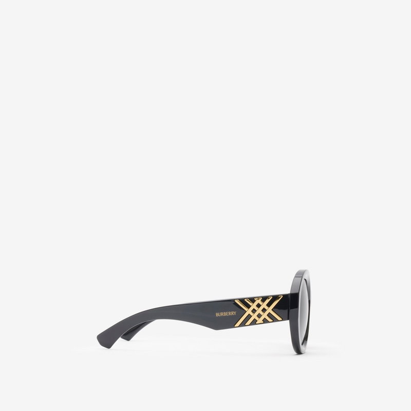 Round-frame sunglasses crafted in Italy from nylon, detailed with a textured metal check at the temples and finished with subtle gold Burberry lettering.