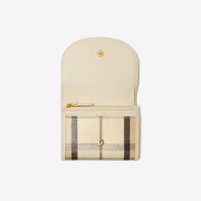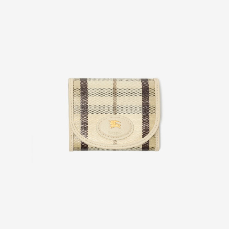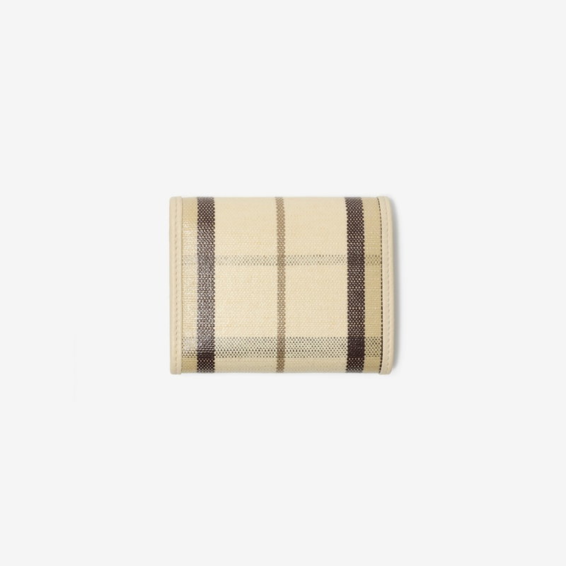 Rooted in the outdoors, the compact Highlands wallet is made in Italy from a cotton linen blend trimmed with smooth calf leather. The fabric is jacquard-woven with the Burberry Check and has a coated finish inspired by rainwear.