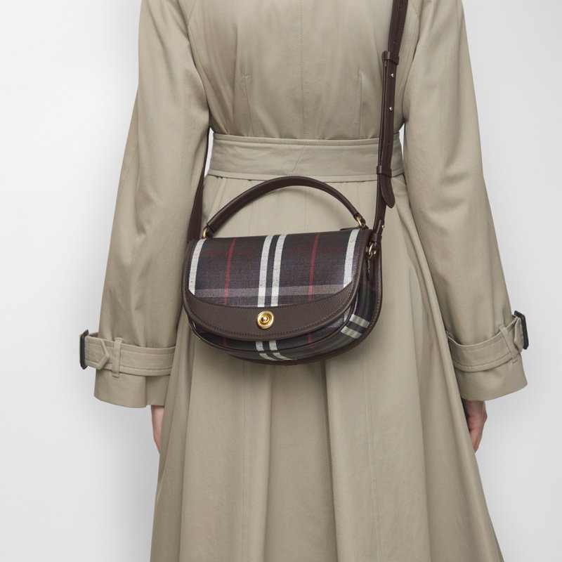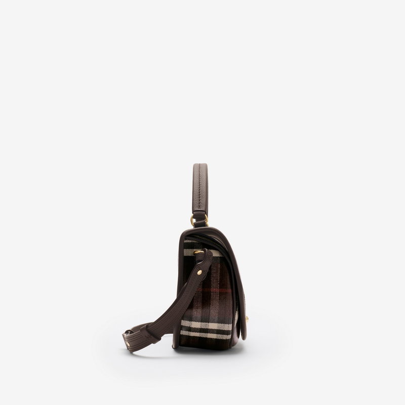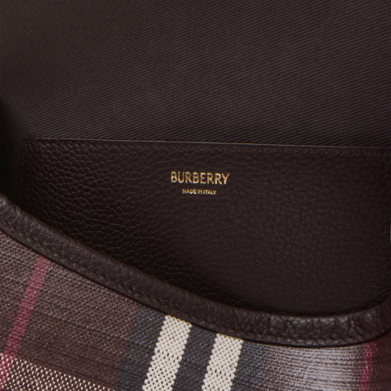 Rooted in the outdoors, a crossbody bag made in Italy from a cotton linen blend trimmed with grainy calf leather and lined in cotton. The fabric is jacquard-woven with the Burberry Check and has a coated finish inspired by rainwear.