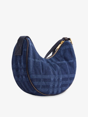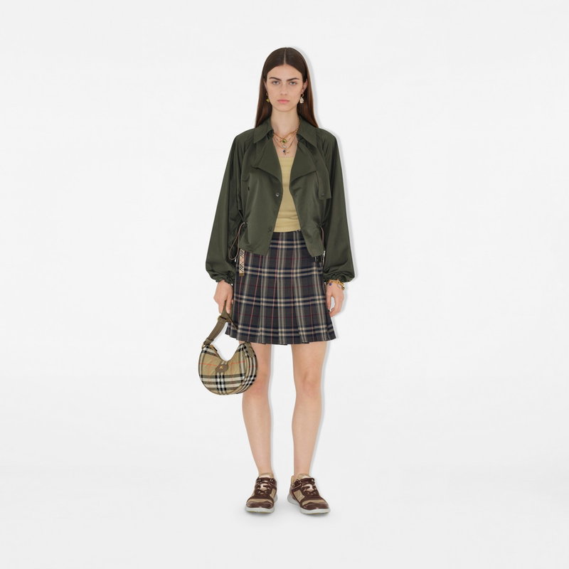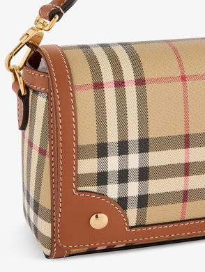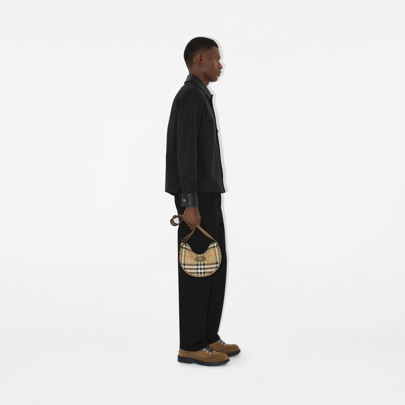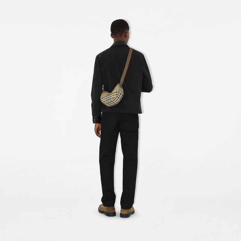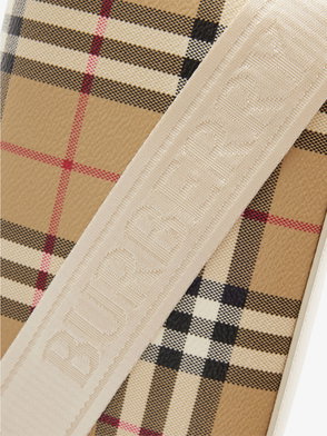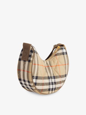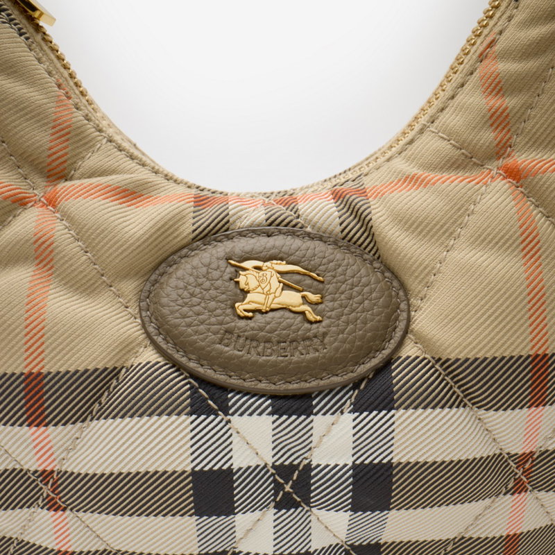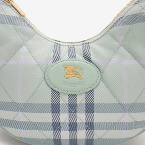 Inspired by country pursuits, a crossbody bag made from a quilted nylon blend woven with the Burberry Check in a seasonal colourway. The design features tonal leather trims and the Knight stamp, an archival motif first seen on Burberry bags in the 1980s.