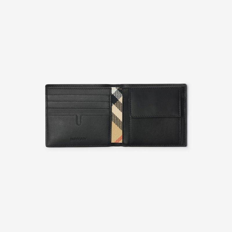 A bifold coin wallet in Italian-tanned grainy calf leather with a partial Burberry Check lining in our signature sand colourway. The design is finished with an enamelled Knight stamp plaque, an archival motif first seen on Burberry bags in the 1980s. Sized to fit all currencies.