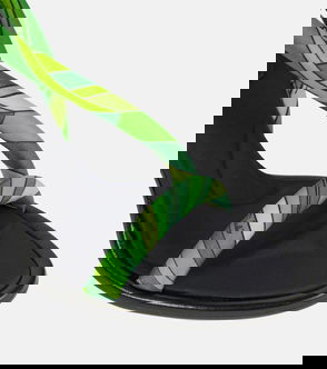 Italian-made sandals in python print leather with zip openings. The style is set on a stiletto heel and leather sole embossed with the Equestrian Knight Design.