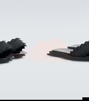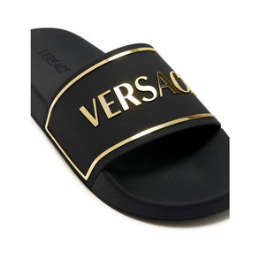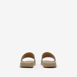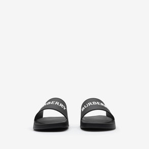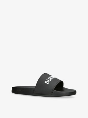 A pair of slides made in Italy with a contrasting logo, featuring a contoured insole for comfort.