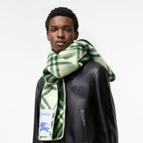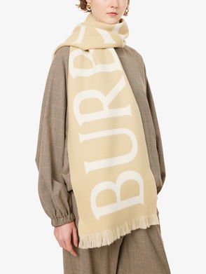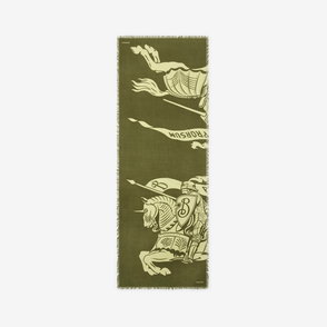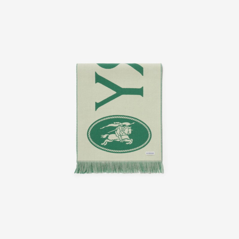 A two-tone scarf crafted in Italy from wool, jacquard-woven with Burberry lettering and our Knight stamp - an archival motif first seen on Burberry bags in the 1980s.