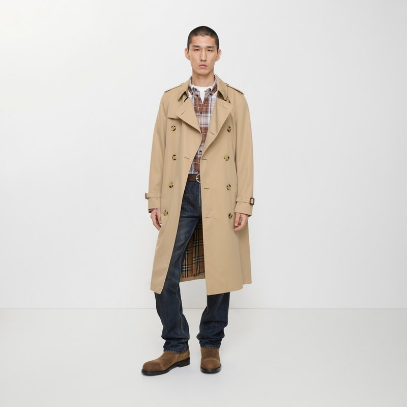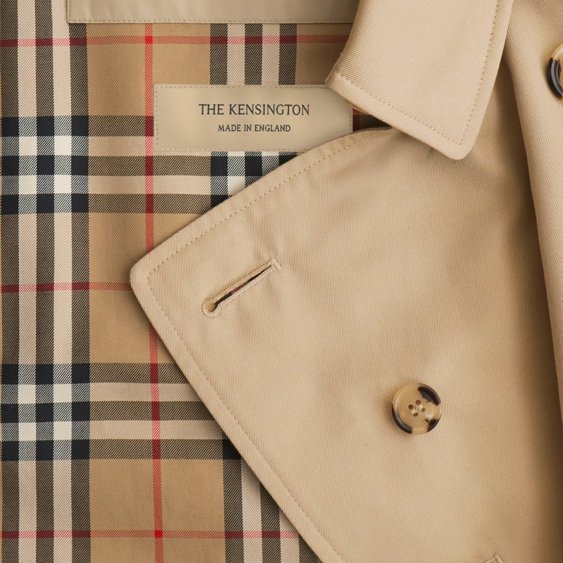 Characterised by classic proportions, the Kensington trench coat is tailored to a regular fit with structured shoulders. The heritage silhouette is crafted in England from shower-resistant cotton gabardine and lined with the iconic check - both woven at the Burberry mill in Yorkshire.