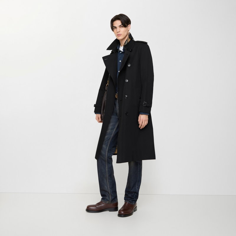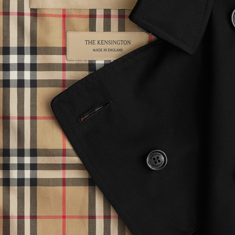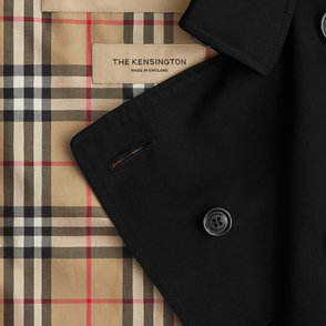 Characterised by classic proportions, the Kensington trench coat is tailored to a regular fit with structured shoulders. The heritage silhouette is crafted in England from shower-resistant cotton gabardine and lined with the iconic check - both woven at the Burberry mill in Yorkshire. More room at the chest and through the body allows for lightweight layering, ideal for the city wardrobe. Signature details, including epaulettes and leather-wrapped buckles, complete the design.