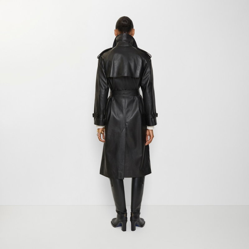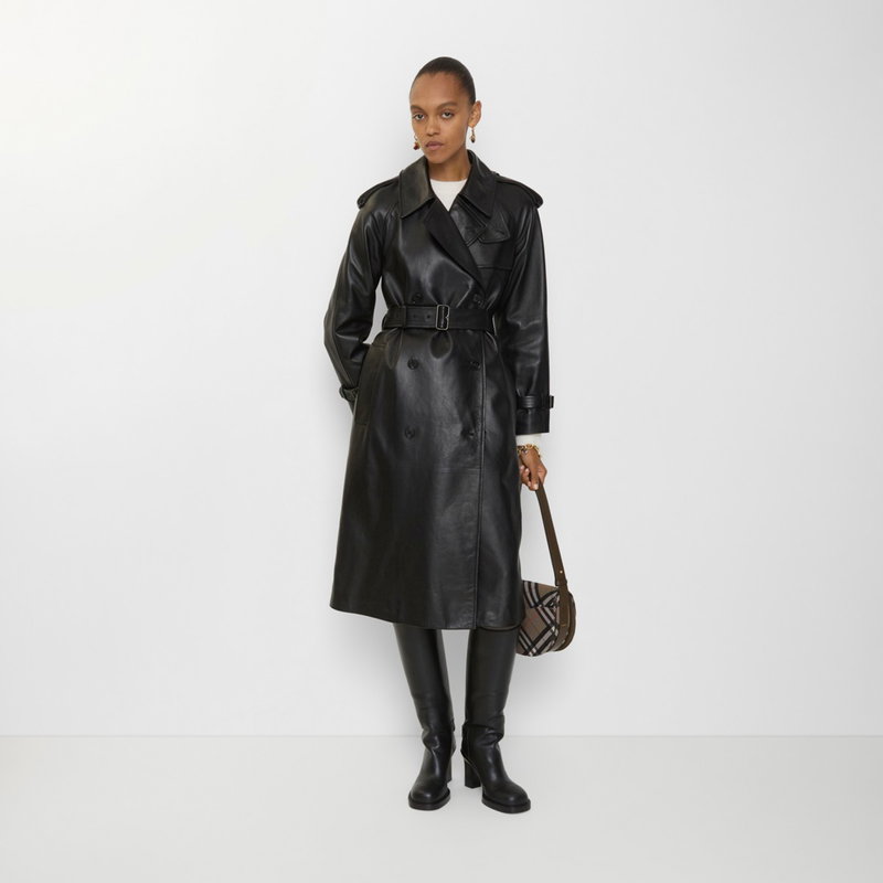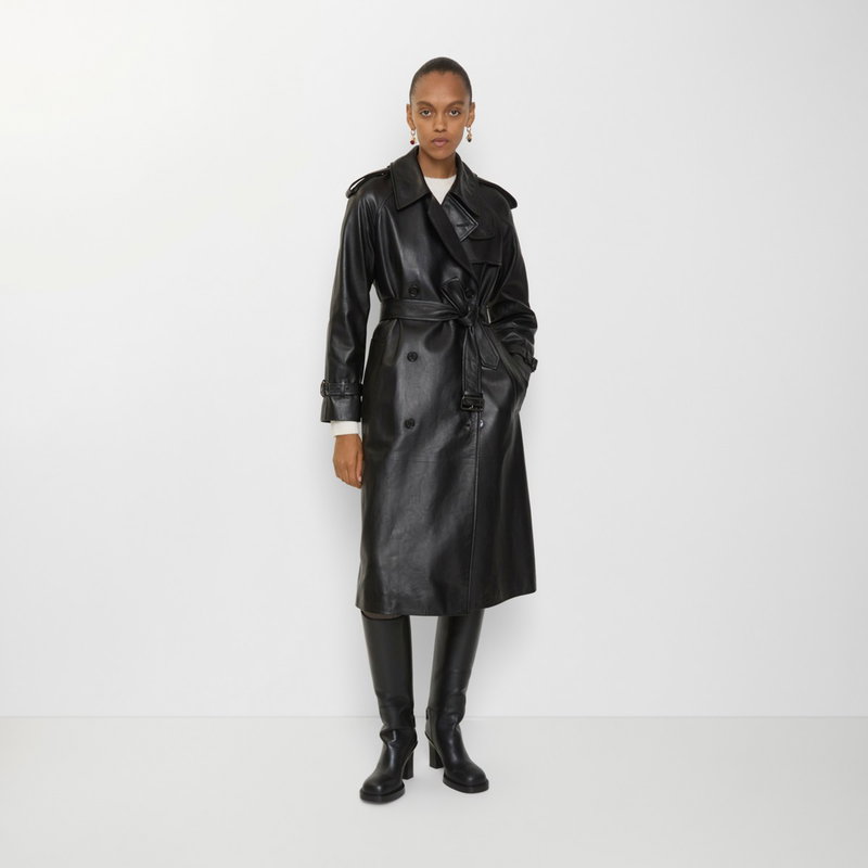 Our signature Castleford trench coat reworked in supple plongé leather. The Italian-made style is cut to a regular fit with raglan sleeves. The design is fully lined and features buttons debossed with the Equestrian Knight Design and hardware in an antique finish.