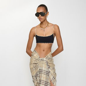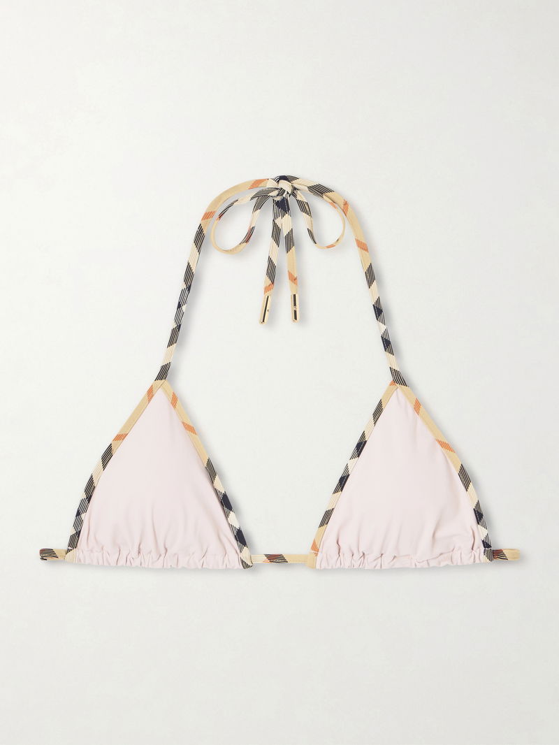 The 'Mata' bikini top by Burberry brings the house’s iconic Archive Check to a clean design. Cut in a classic triangle silhouette, it is framed with slim straps and edged with the motif. Pair it with the matching briefs for a coordinated set.