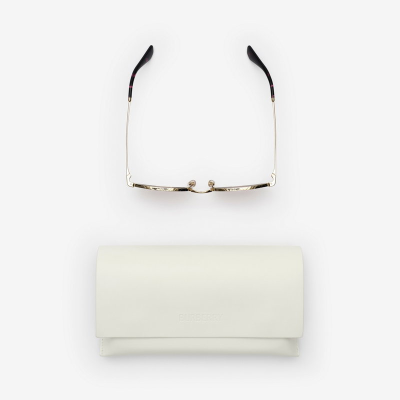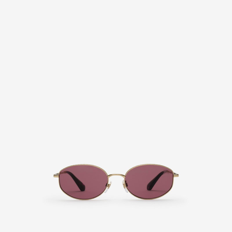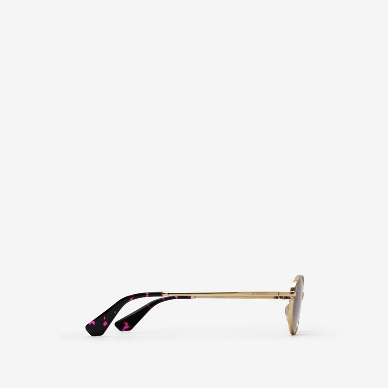 A pair of oval sunglasses made in Italy from metal with tortoiseshell temple tips. The slender silhouette is laser-engraved with our logo and the Burberry Check, referencing the hardware of some of the brand's most iconic bags.