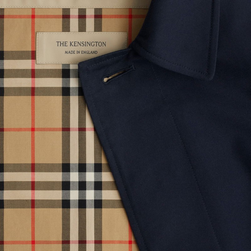 Characterised by classic proportions, the Kensington trench coat is tailored to a regular fit with structured shoulders. The heritage silhouette is crafted in England from shower-resistant cotton gabardine and lined with the iconic check - both woven at the Burberry mill in Yorkshire. More room at the chest and through the body allows for lightweight layering, ideal for the city wardrobe. Signature details, including epaulettes and leather-wrapped buckles, complete the design.
