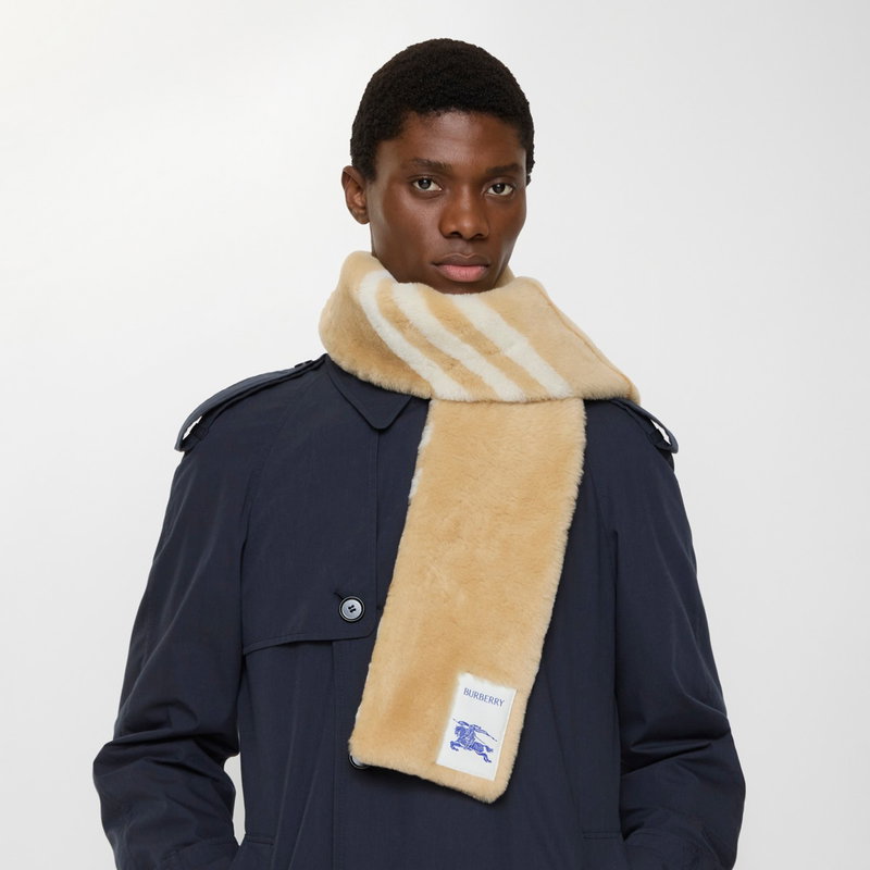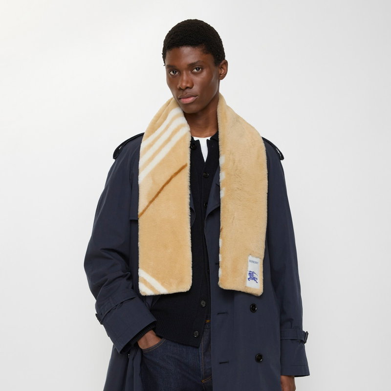 Narrow Check Shearling Scarf