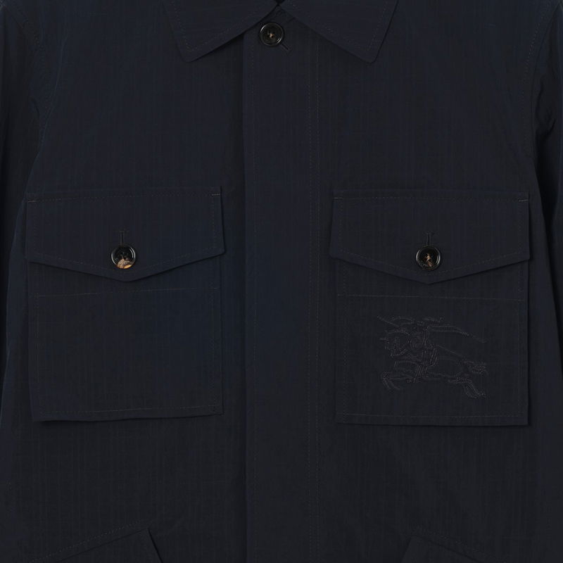 A workwear-inspired jacket in ripstop nylon, woven with a subtle check pattern - a nod to our signature motif. Tailored to a relaxed fit, the design is unlined for lightness and finished with an appliquéd Equestrian Knight Design.