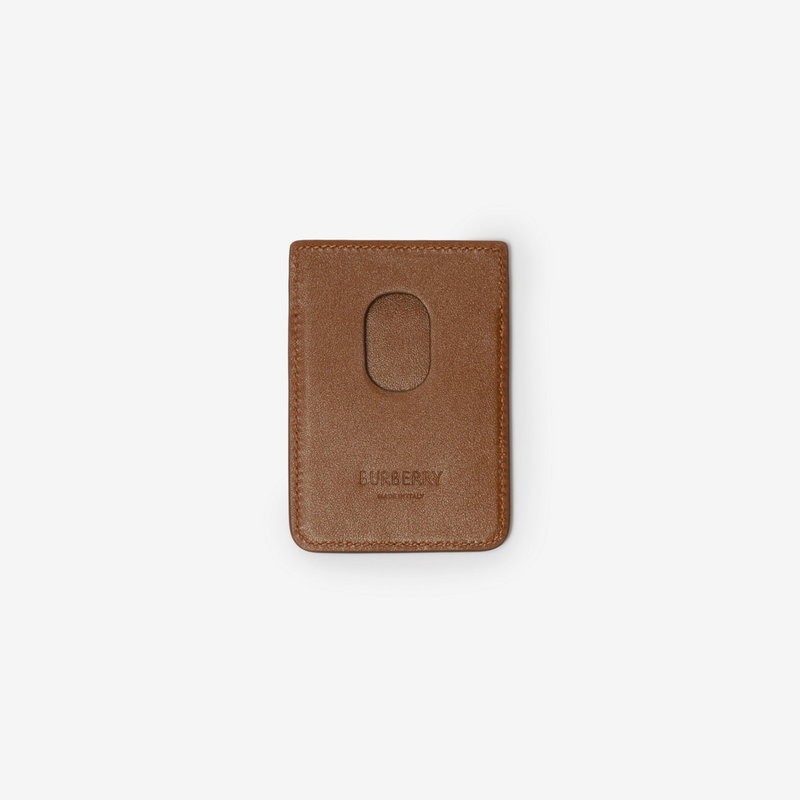 A card case made in Italy from smooth calf leather with a pop of Burberry Check. Designed to be used with a MagSafe phone cover, the magnetic style is finished with an embossed Equestrian Knight Design.