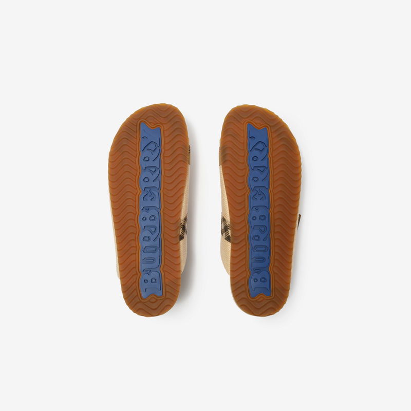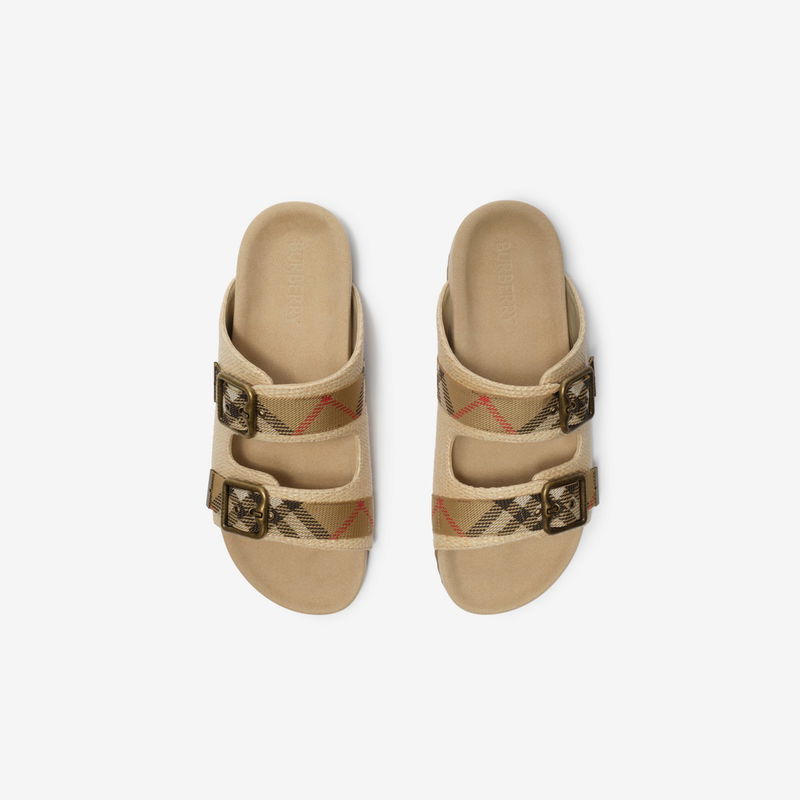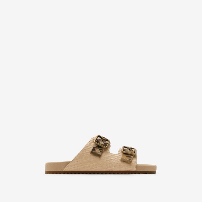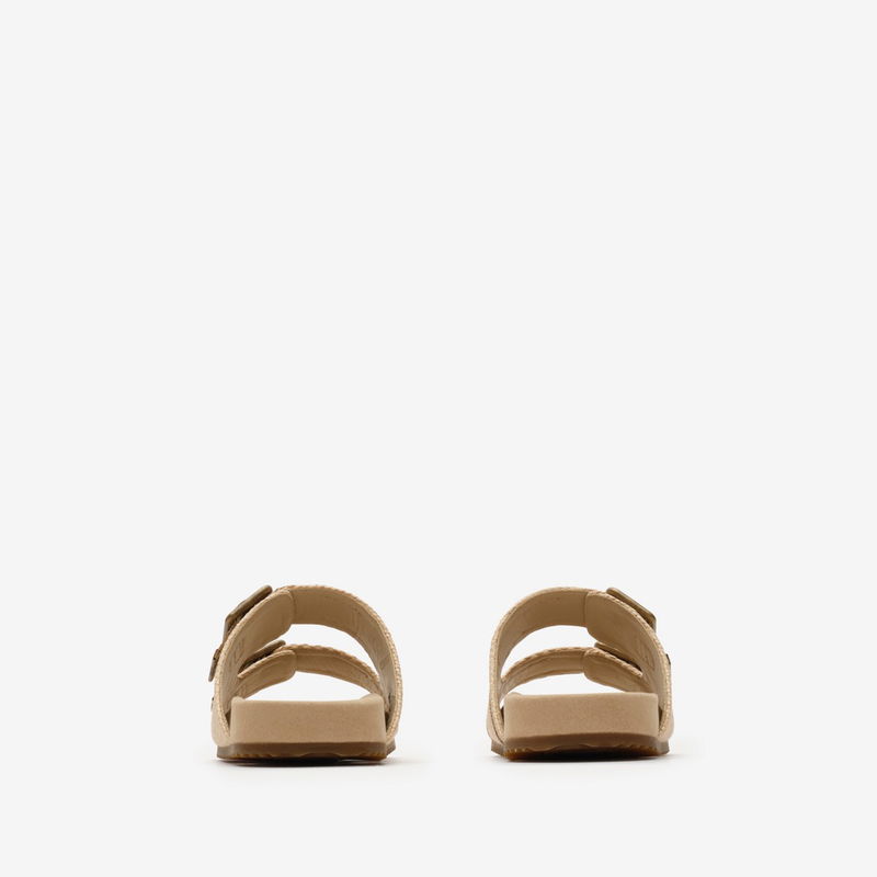 A pair of summery raffia-effect sandals crafted in Italy, set on a grooved sole moulded with archive Burberry lettering. The Urchin is finished with adjustable B buckle straps, jacquard-woven with the Burberry Check in our signature sand beige colourway. Rounded toe Engraved Burberry lettering at buckles Burberry lettering at sole Comes with a dust bag.