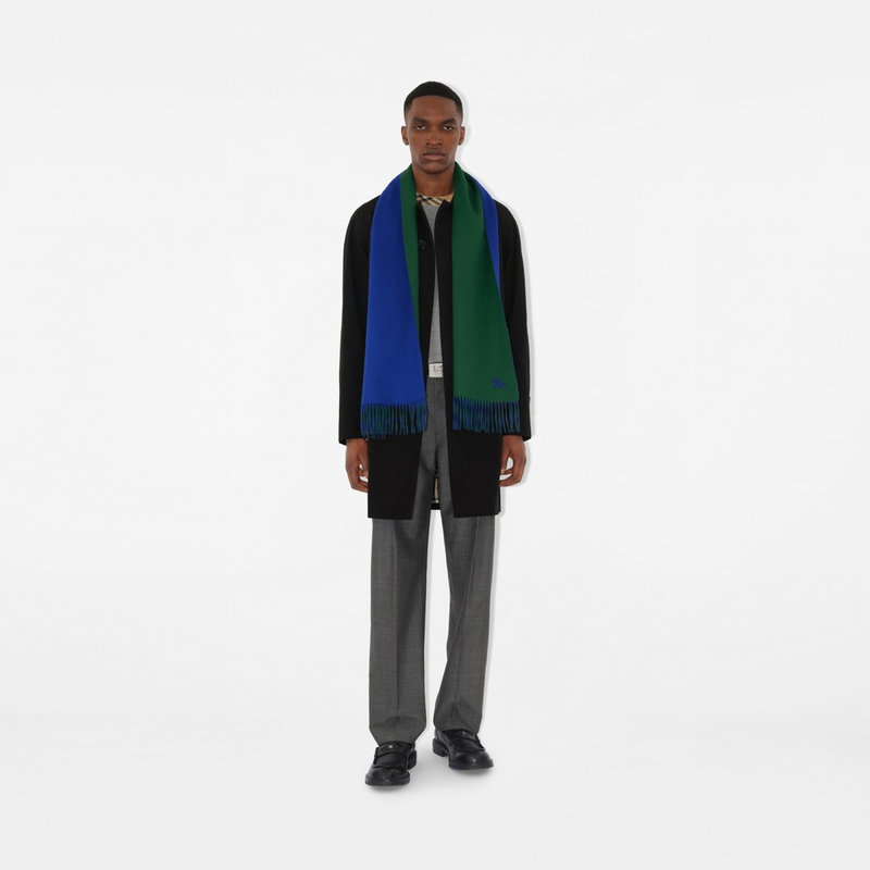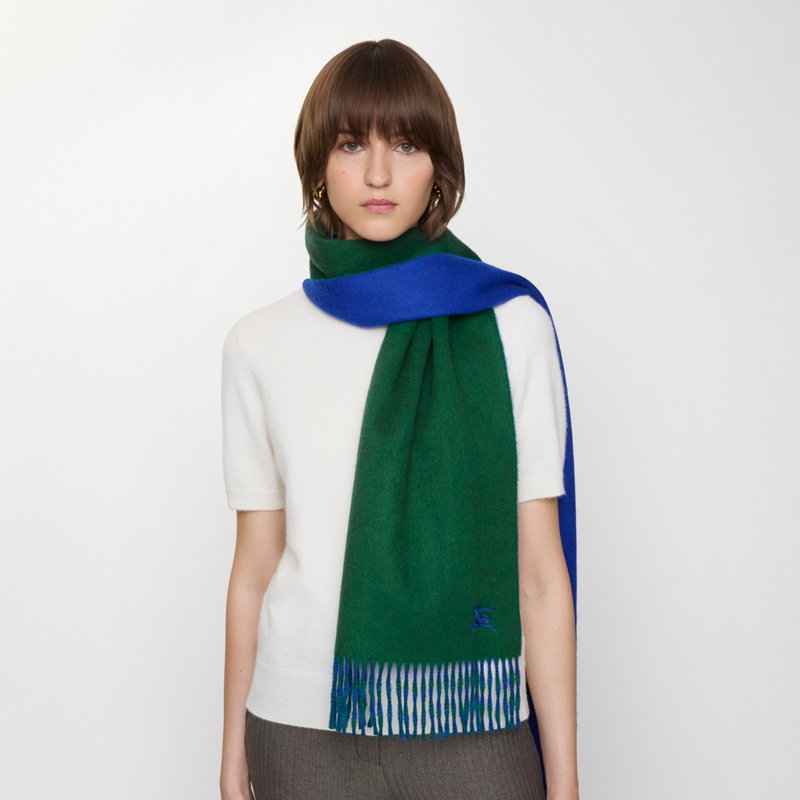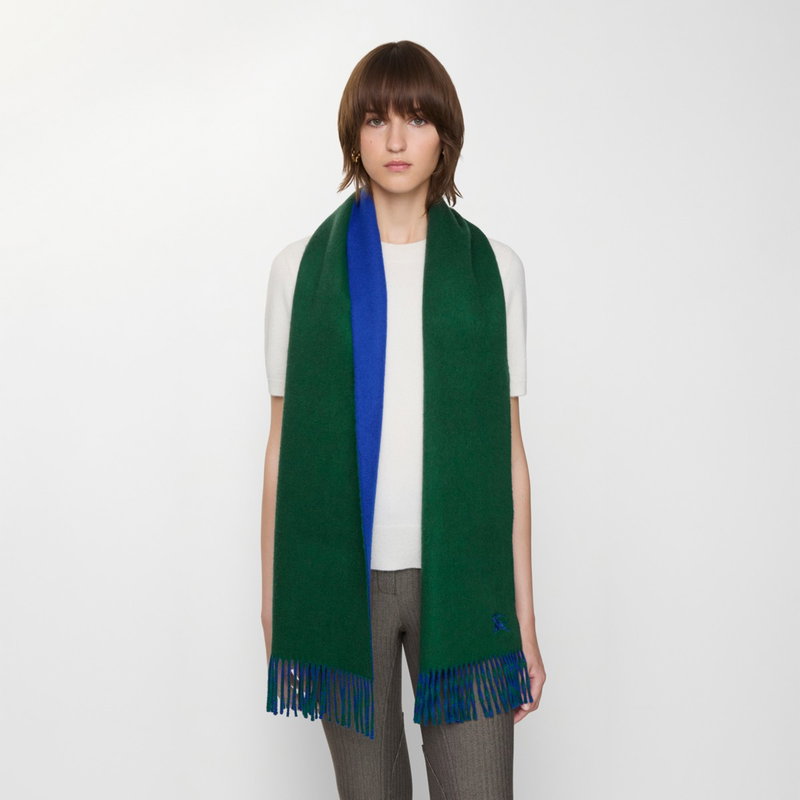 A reversible scarf in cashmere, embroidered with the Equestrian Knight Design. Woven in Scotland at a mill founded in 1797, the fabric is washed in local spring water and brushed for an ultra-soft finish. Rectangular Fringing at both ends
