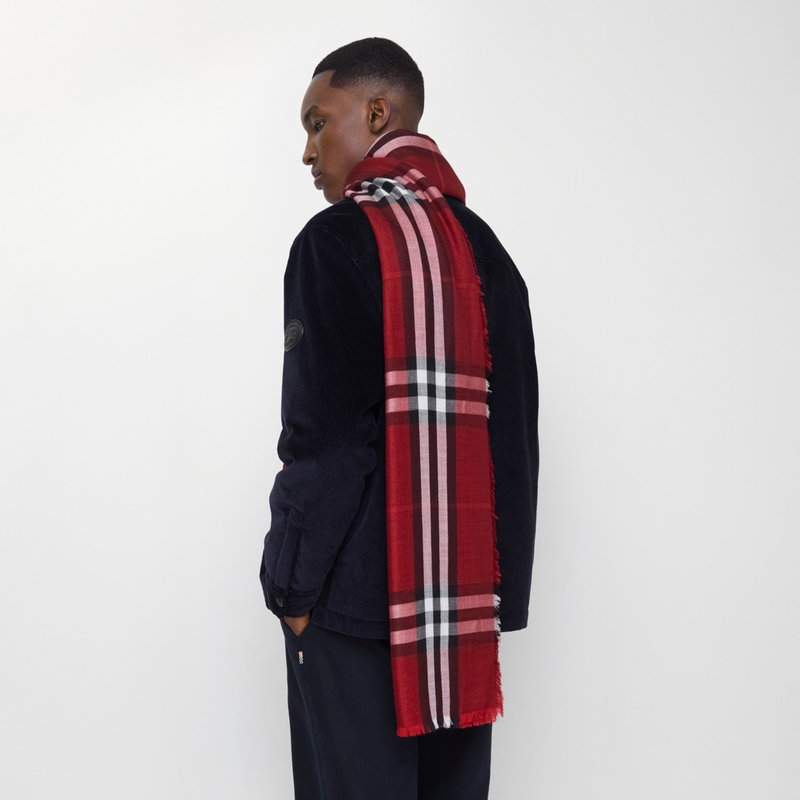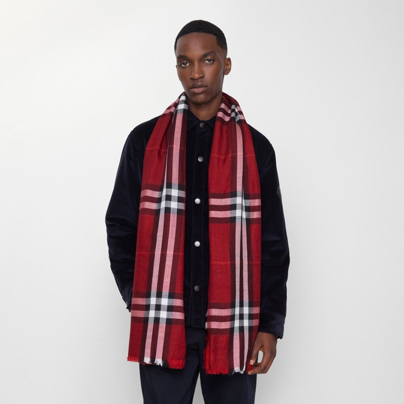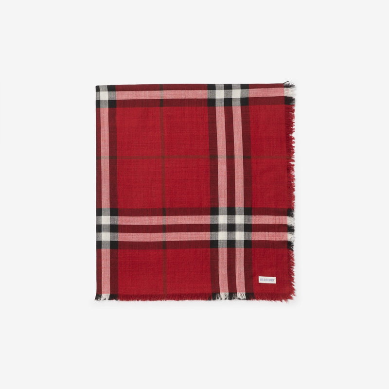 A scarf made in Italy from lightweight wool-silk gauze. The reversible design is printed with the Burberry Check in seasonal oxblood red and post red colourways.