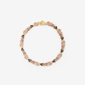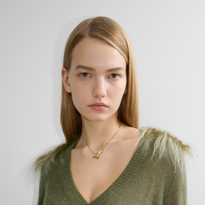An adjustable chain-link necklace made in Italy from sterling silver with gold plating. The shield is inlaid with cubic zirconia and features a detachable cover that can be unclipped to hang as a drop pendant Adjustable chain-link necklace B-shaped charm. Clasp closure Engraved Burberry lettering and hallmarks Comes with a dust bag.