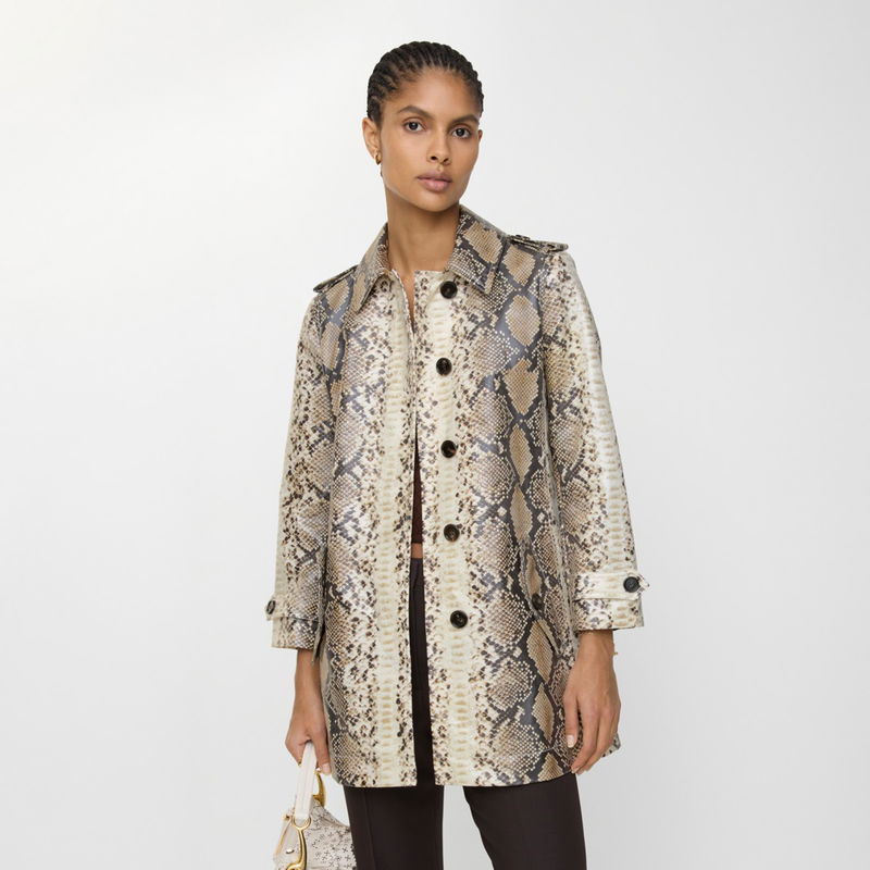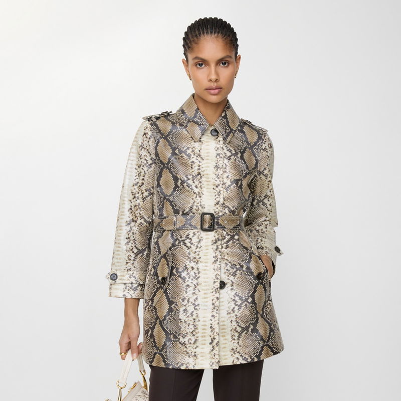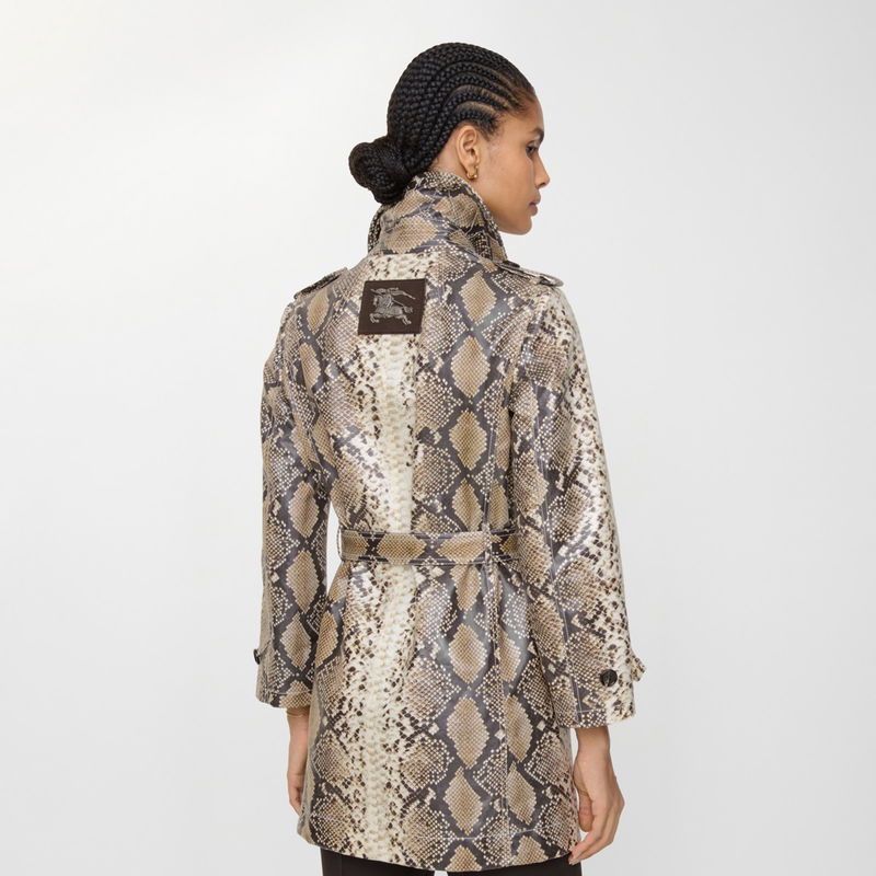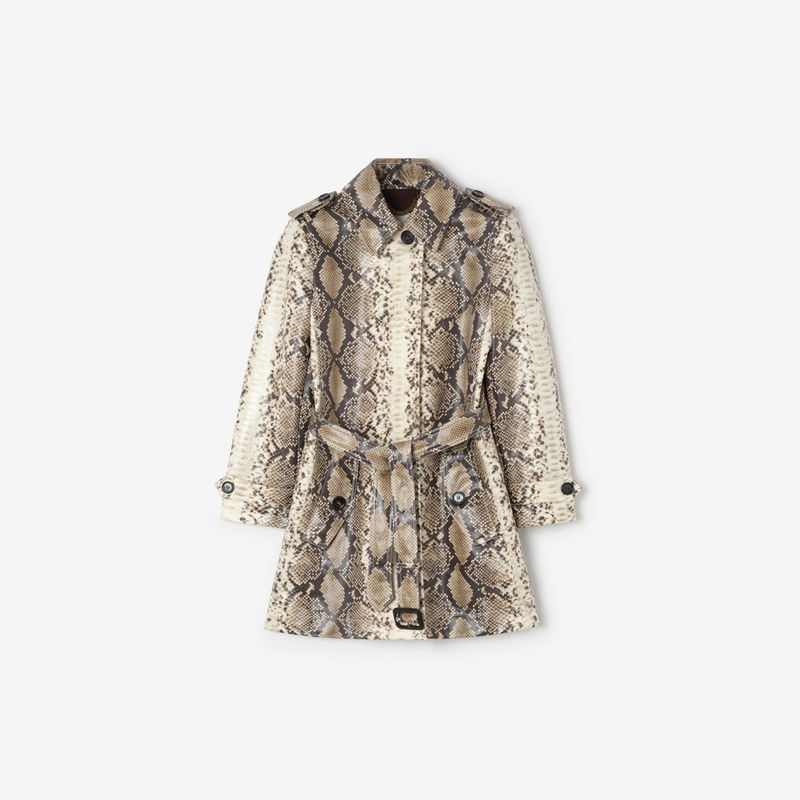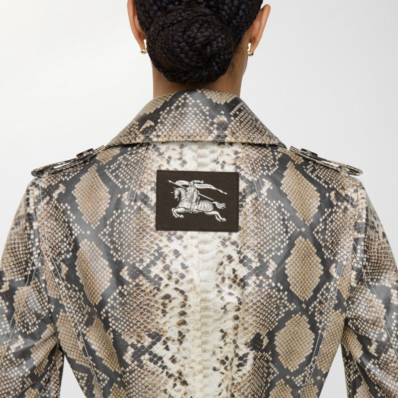 The Stonehaven car coat is defined by a slim fit, echoing the neat and narrow silhouettes of the Burberry Summer 2026 runway collection. Tailored from python-print coated cotton, the single-breasted style is detailed with our Equestrian Knight Design in antiqued metal.