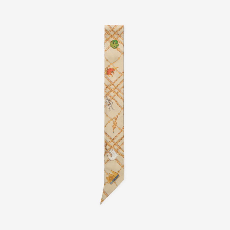 A skinny scarf crafted in Italy from silk twill. The style is printed with artwork depicting our colourful Charm jewellery collection, interwoven into a check design - a fresh interpretation of the iconic house code.