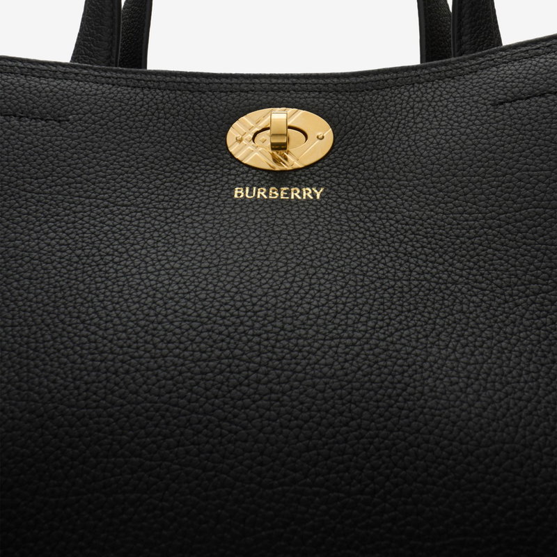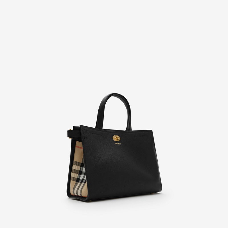 A timeless tote made in Italy from grainy calf leather, with Burberry Check side panels and a matching signature sand beige lining. Compact yet spacious, the design is finished with a check-engraved closure and D-ring hardware inspired by the belt from our iconic trench coats. Carry by hand or on the shoulder using the strap.