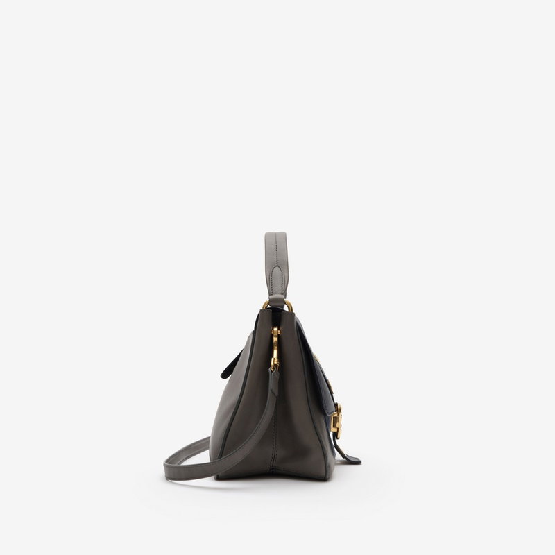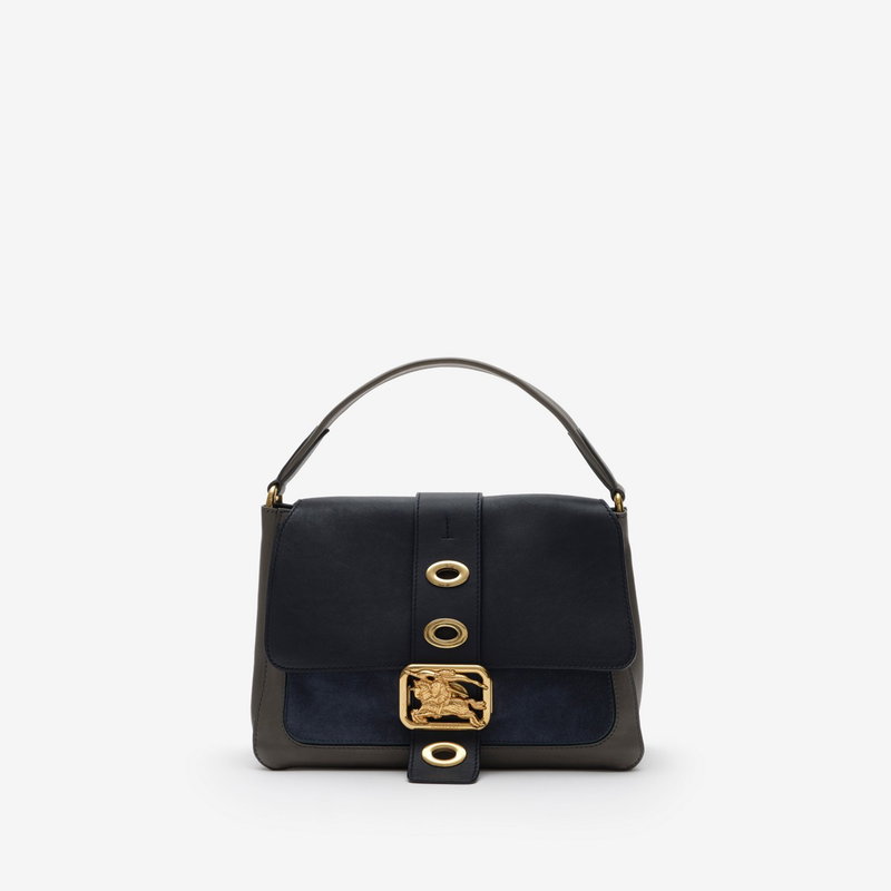 Debuted on the Burberry Summer 2026 runway, the bag is distinguished by a polished metal Equestrian Knight Design and matching oval eyelets. Use the detachable strap to style as a crossbody.