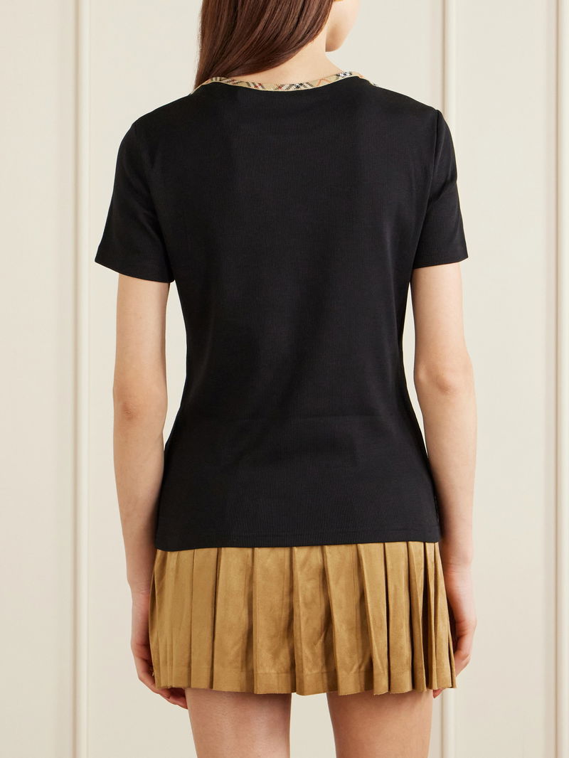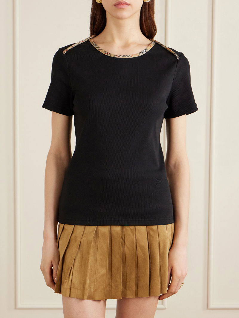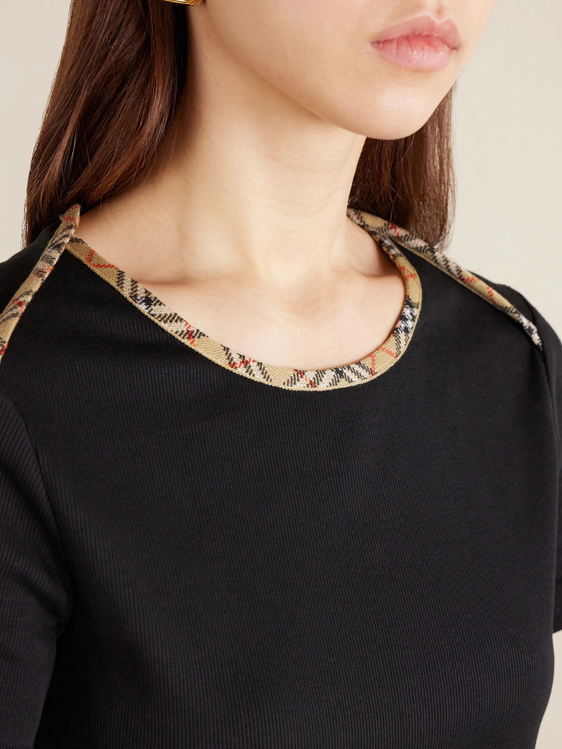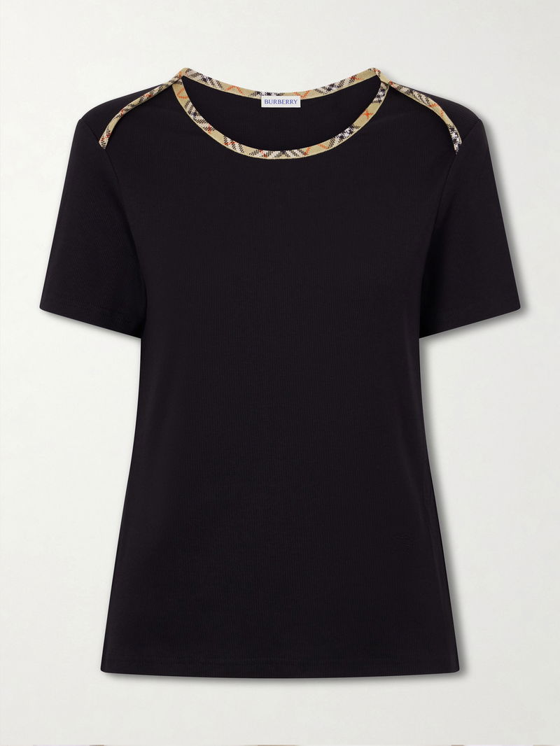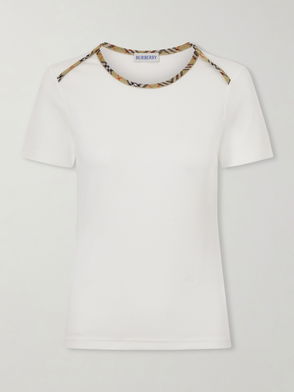 Stephanie Tartan-Trimmed Stretch-Cotton Jersey T-Shirt