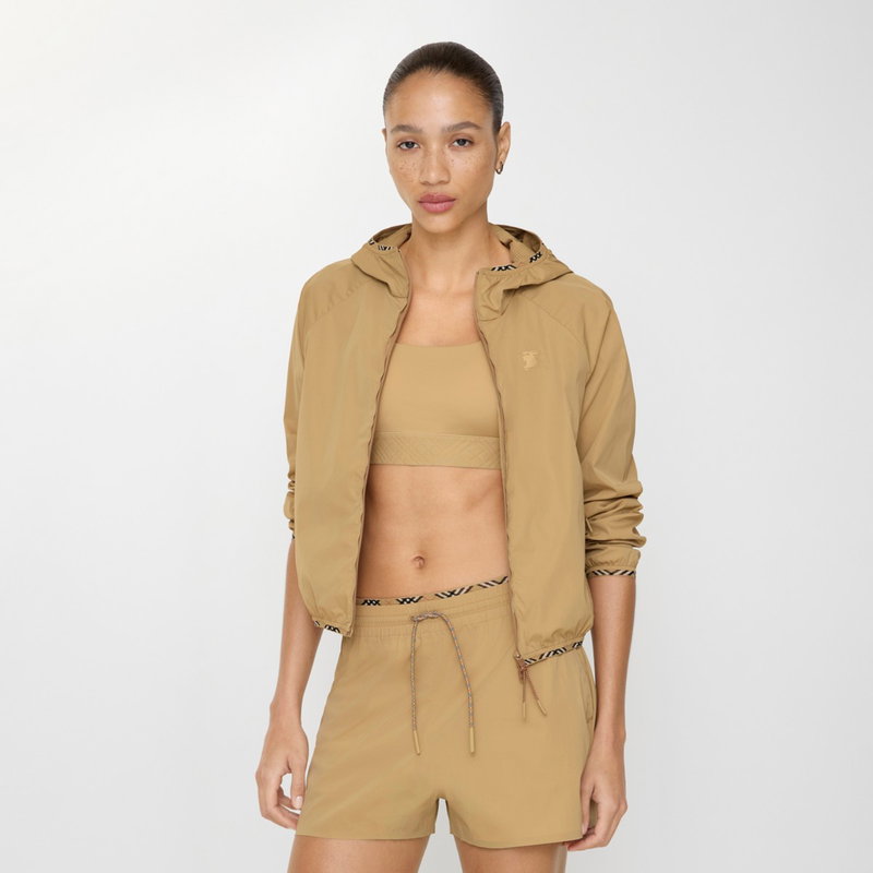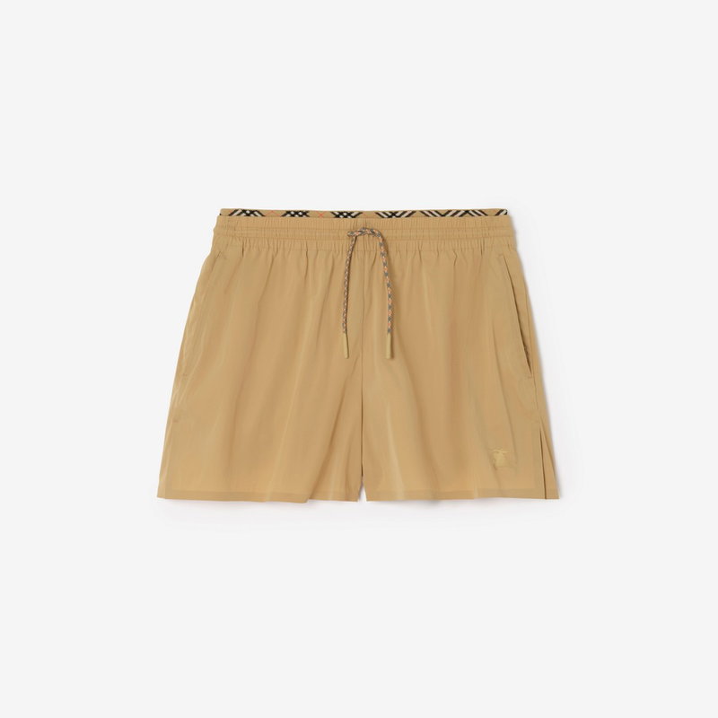 Shorts in super-soft stretch nylon, trimmed with elasticated Burberry Check taping in signature archive beige.