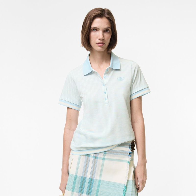 A slim-fit polo shirt in soft cotton jersey, knitted with stripes. The design is embroidered with our Knight stamp and features contrasting stripes at the cuffs and hem for a layered effect.