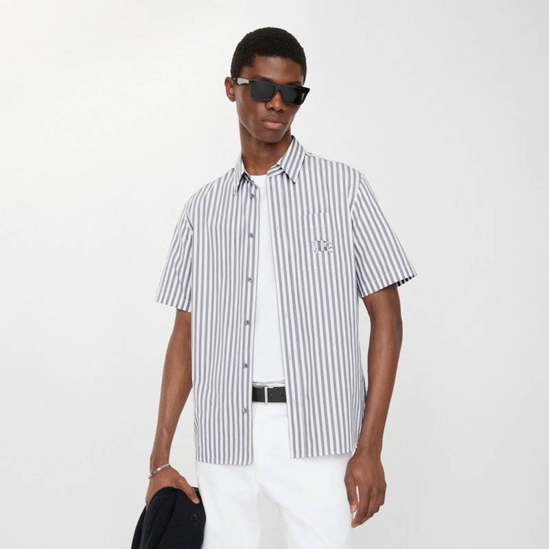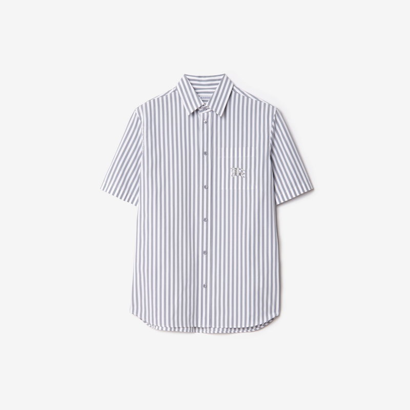 A short-sleeved shirt in cotton poplin, woven with stripes and washed for a softer finish. The style is cut to a regular fit with a centre back pleat and is subtly embroidered with a matching Equestrian Knight Design.