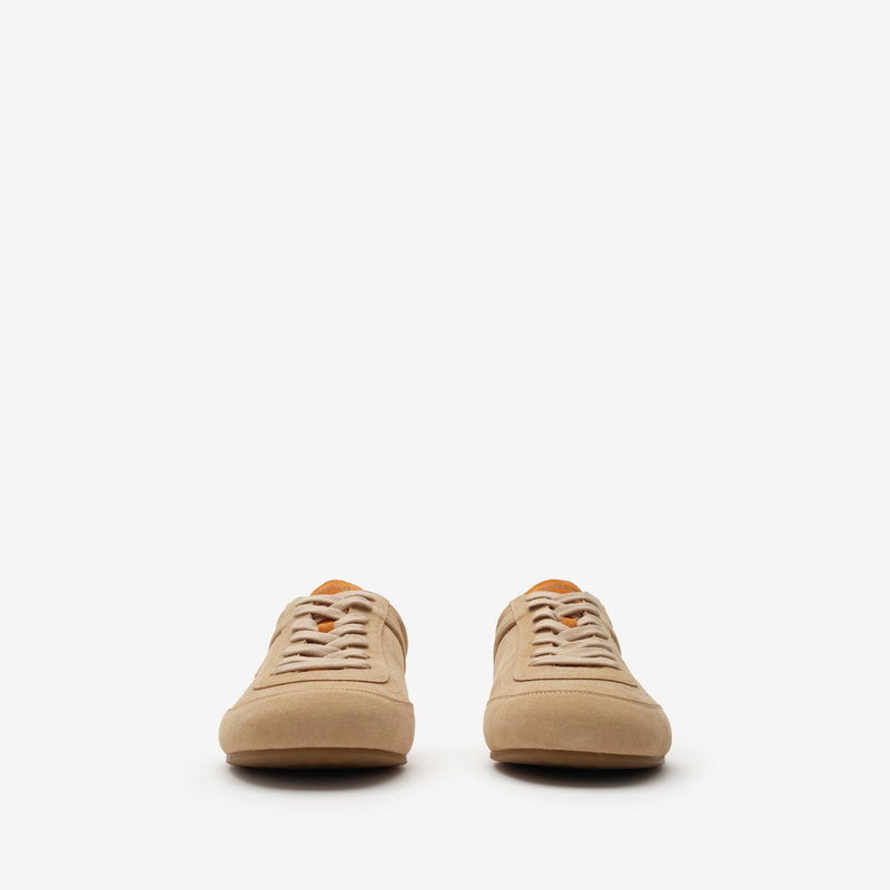 Defined by a streamlined silhouette and minimalist details, our signature Knight Runner sneakers are refreshed in soft suede. Crafted in Italy, the low-profile style is embroidered with an orange Equestrian Knight Design and features Burberry Check webbing at the heel. The thin rubber sole is finished with a check tread for extra grip underfoot.