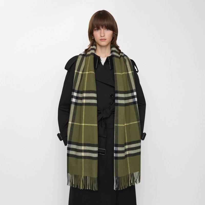 Wide Check Cashmere Scarf