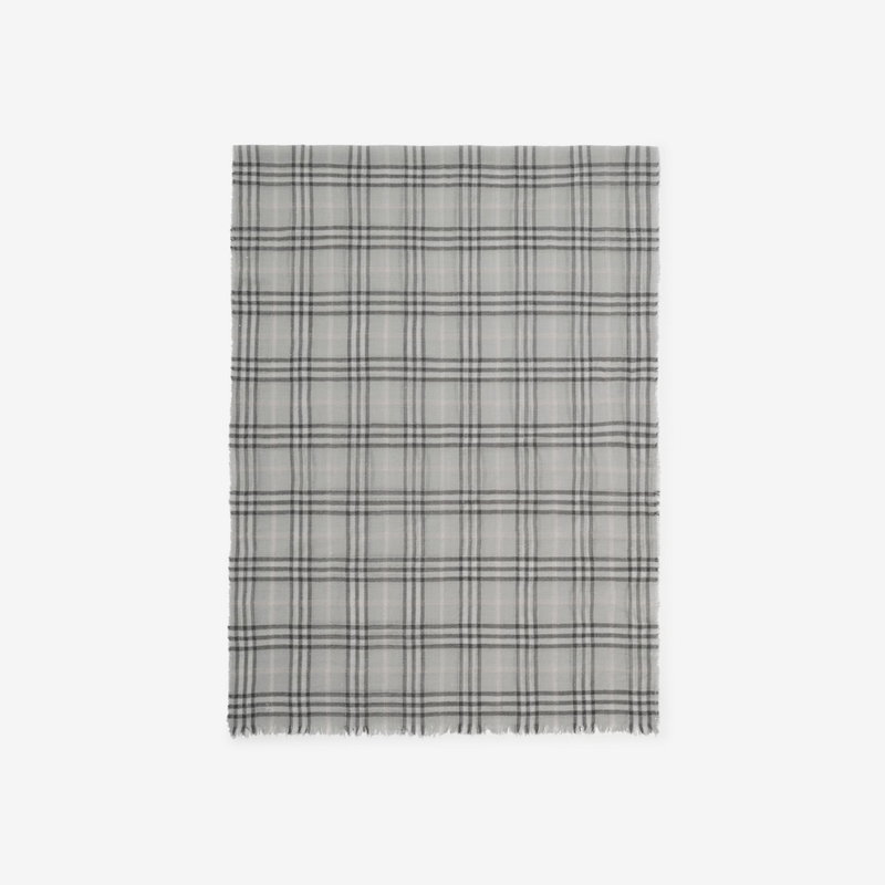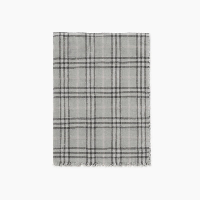 The Burberry Check scarf is refreshed in a textured wool silk blend. Woven in a lightweight gauze, the design is intricately embellished with light-catching sequins.