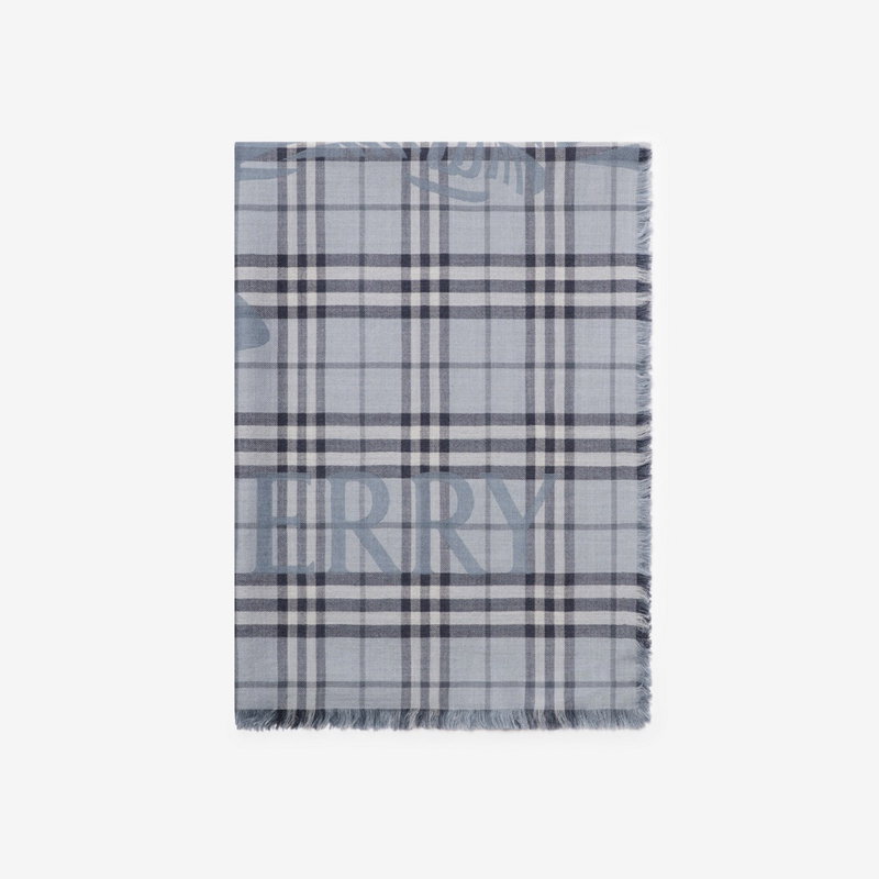 A wide scarf made in Italy from lightweight wool silk, designed for year-round wear. The style is jacquard-woven with our Equestrian Knight Design, logo and the Burberry Check in a seasonal bank blue colourway.