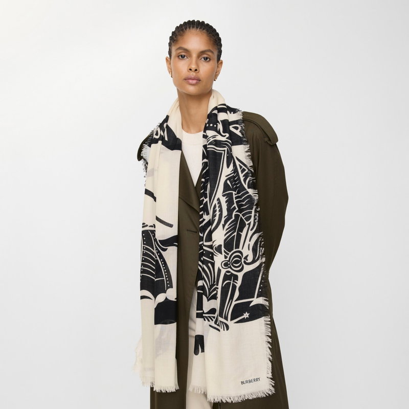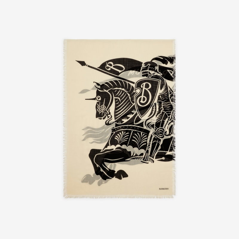 An Italian-made scarf in wool, screen-printed with the Equestrian Knight Design and our logo.